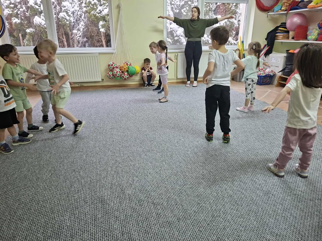 Elsőként a programban ajánlott „Bevezető játékot” játszottuk el. Miután mindenki átöltözött a következő motivációval invitáltam a gyerekeket a tornaszobához: