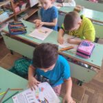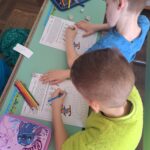 A gyerekek kiszínezik a sálat, aszerint, hogy hányast dobtak a kockával.