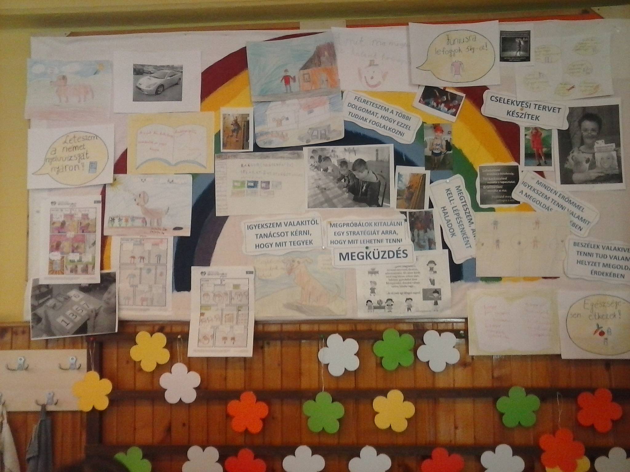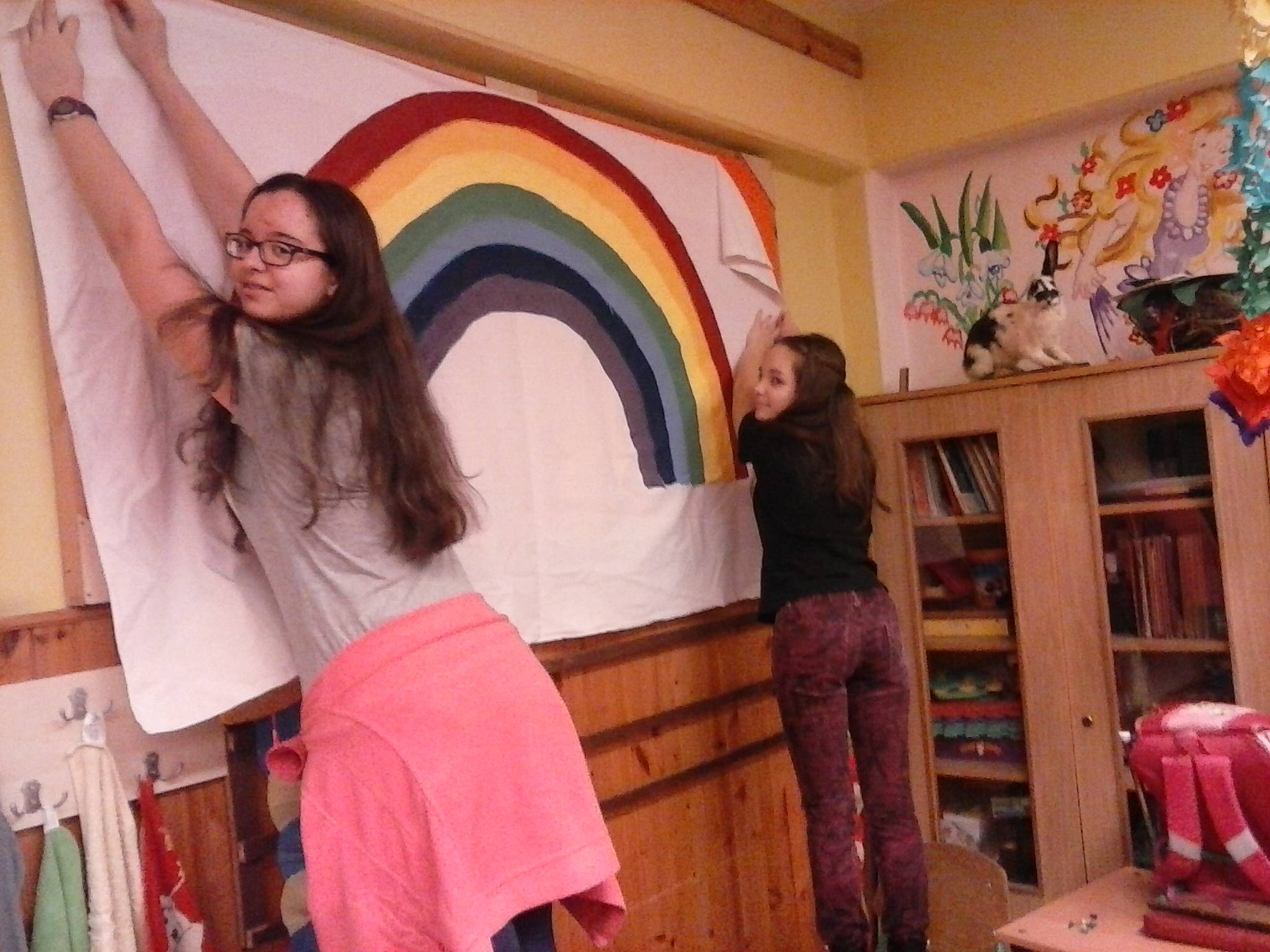Szülői segítséggel elkészült a csodálatos szivárvány, melyre a diákok nagy szorgalommal helyezték el a képregényeket, idézeteket, fotókat, rajzokat.