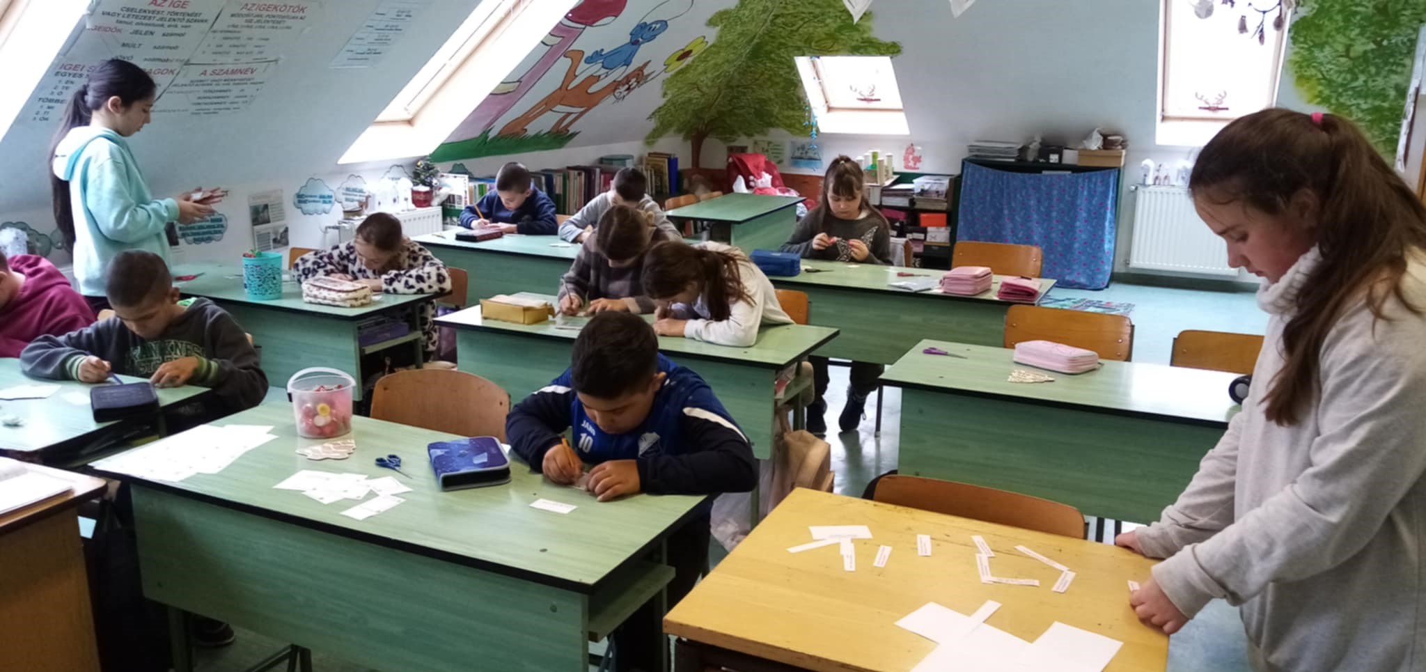 A decemberi Boldogságóra keretében a 4. osztályos tanulók egyéni alkotómunkában készítettek mézeskalács figurákat. A tevékenységhez játékos matematikai feladványok adtak keretet.