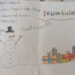 Karácsonyi képeslap készítése társunknak, kalapból húzással. Beszélgetés a társas kapcsolatokról és az apró gesztusokról.