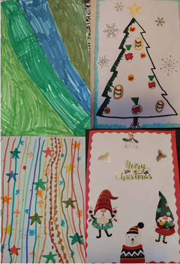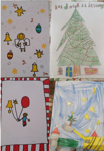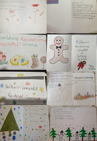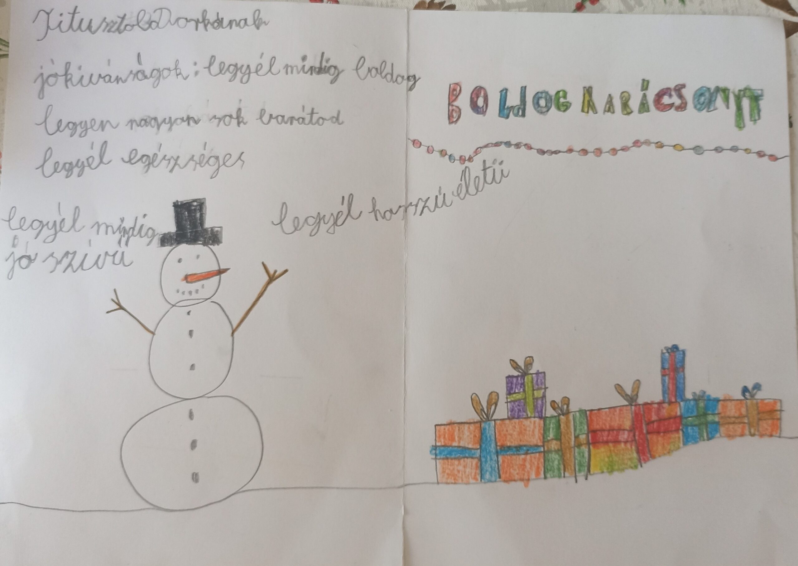 Karácsonyi képeslap készítése társunknak, kalapból húzással. Beszélgetés a társas kapcsolatokról és az apró gesztusokról.
