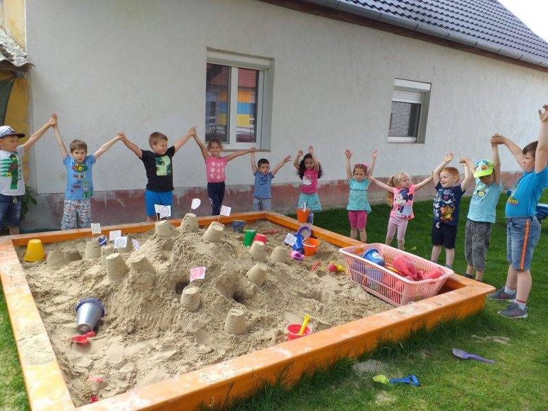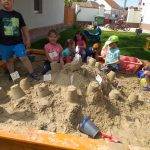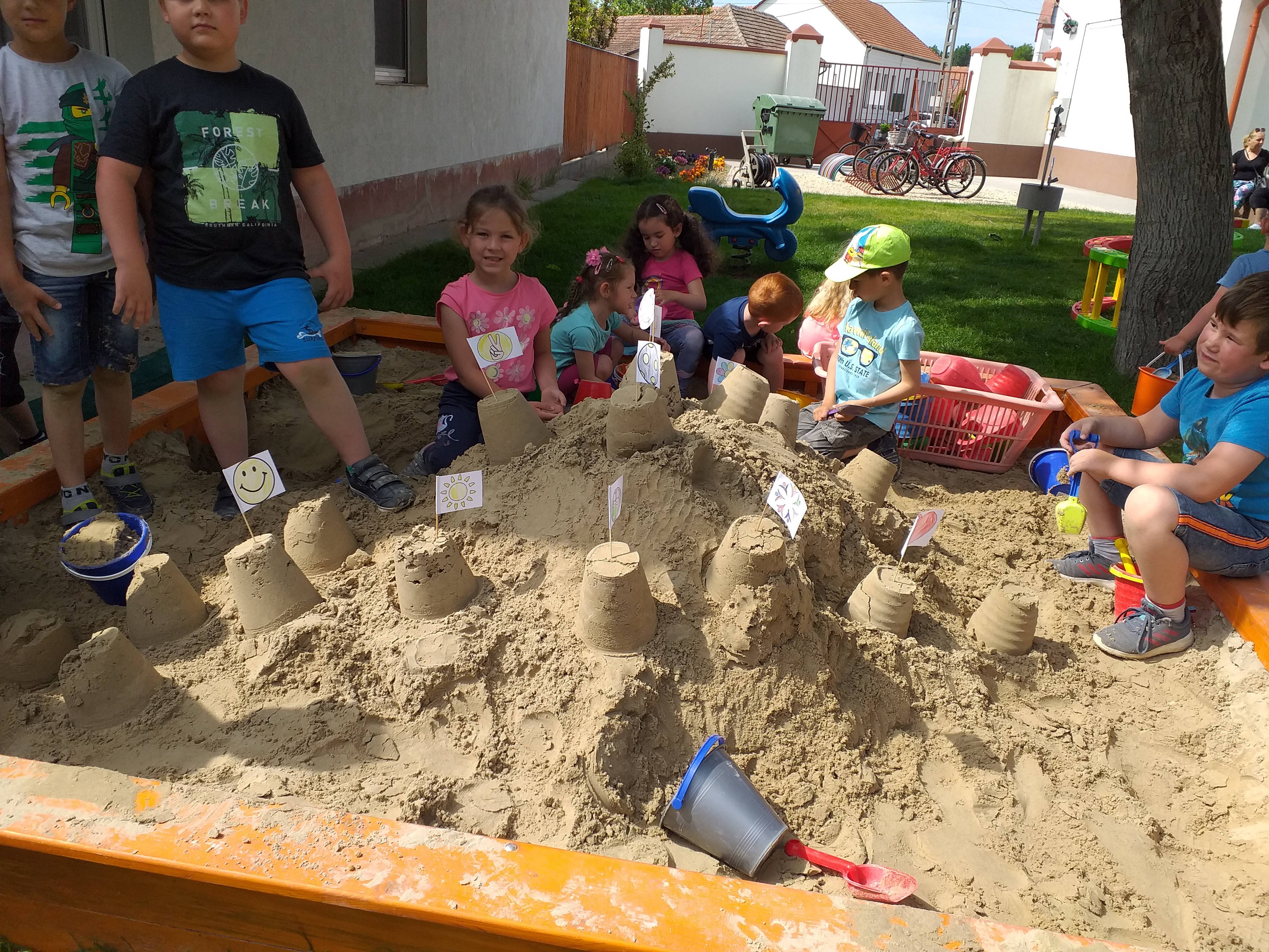 Majd a gyerekekkkel megbeszéltük, hogy milyen is legyen a „Mi a Boldogságvárunk”, melyet minden gyermek boldogan épített az udvari homokozóban.