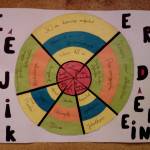 Az osztályban először mindenki végig gondolta és leírta a saját, egyéni céljait, majd ezeket áttekintve összevetettük, hogy vannak-e, és ha igen, melyek az osztály közös céljai. Ezek kerültek fel a céltábla közepére, a külső körökre pedig a hozzájuk vezető részcélok, hiszen ahogy tanultuk és tapasztaltuk, könnyebb elérni egy nagy célt, ha azt kisebb részcélokra bontjuk.