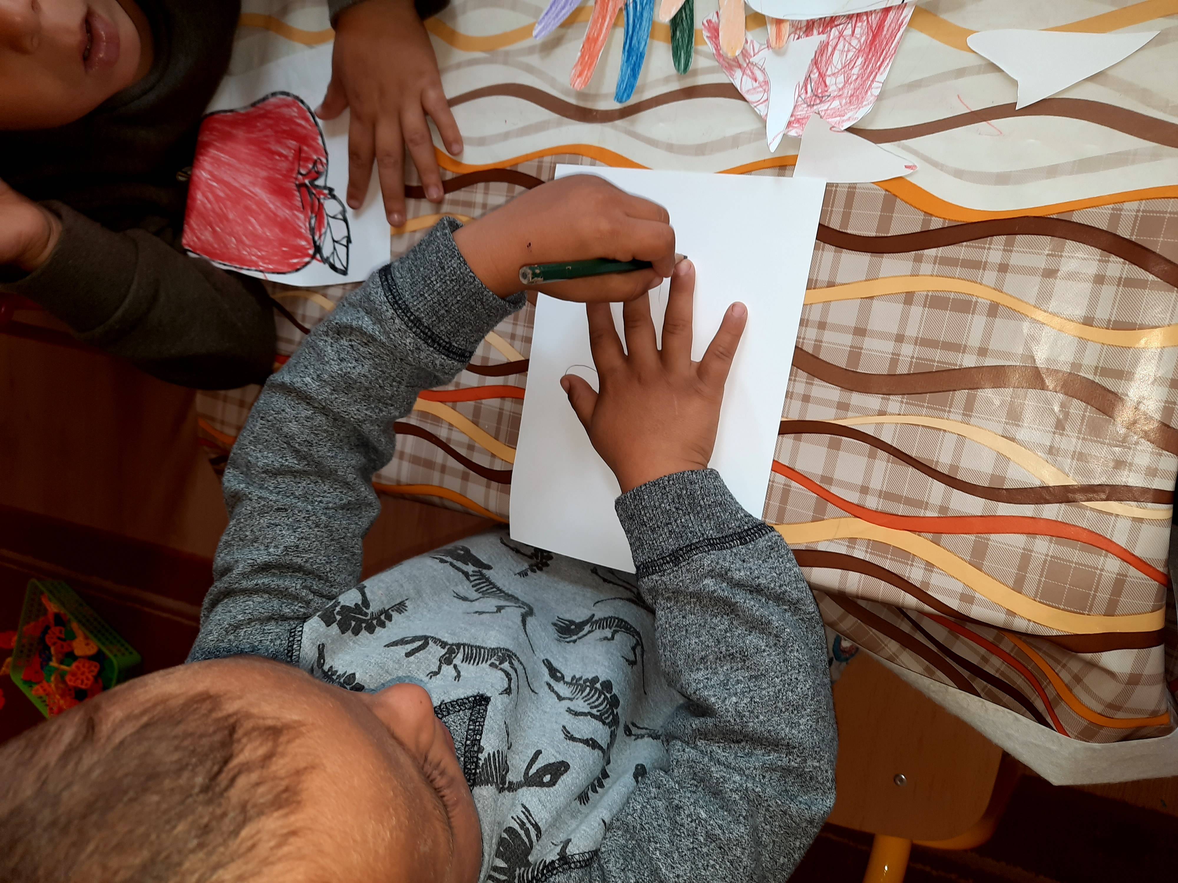 Második évet kezdtük a Boldogságóra programban ezzel a csoporttal. Beszélgettünk arról, milyen érzéseink lehetnek ha hálásak vagyunk valamiért, valakinek. Mindenki körberajzolta a saját kezét és az ujjait más-más színre színezni, majd körben ülve megbeszéltük mit jelentenek az ujjak. Volt aki a kedvenc játékát, volt aki a családját említette,