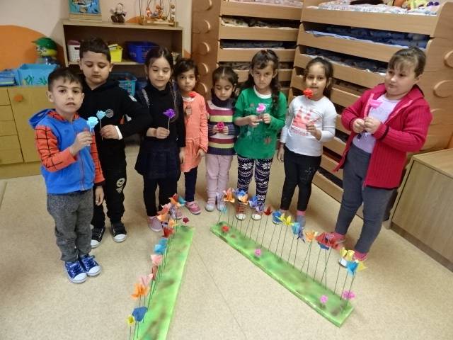 Elkészítettük hálakertünket. Az apró kezek nagy igyekezettel készítették a virágokat, amit elhelyeztek a hálakertben, miközben elmondták, kinek és miért hálásak.