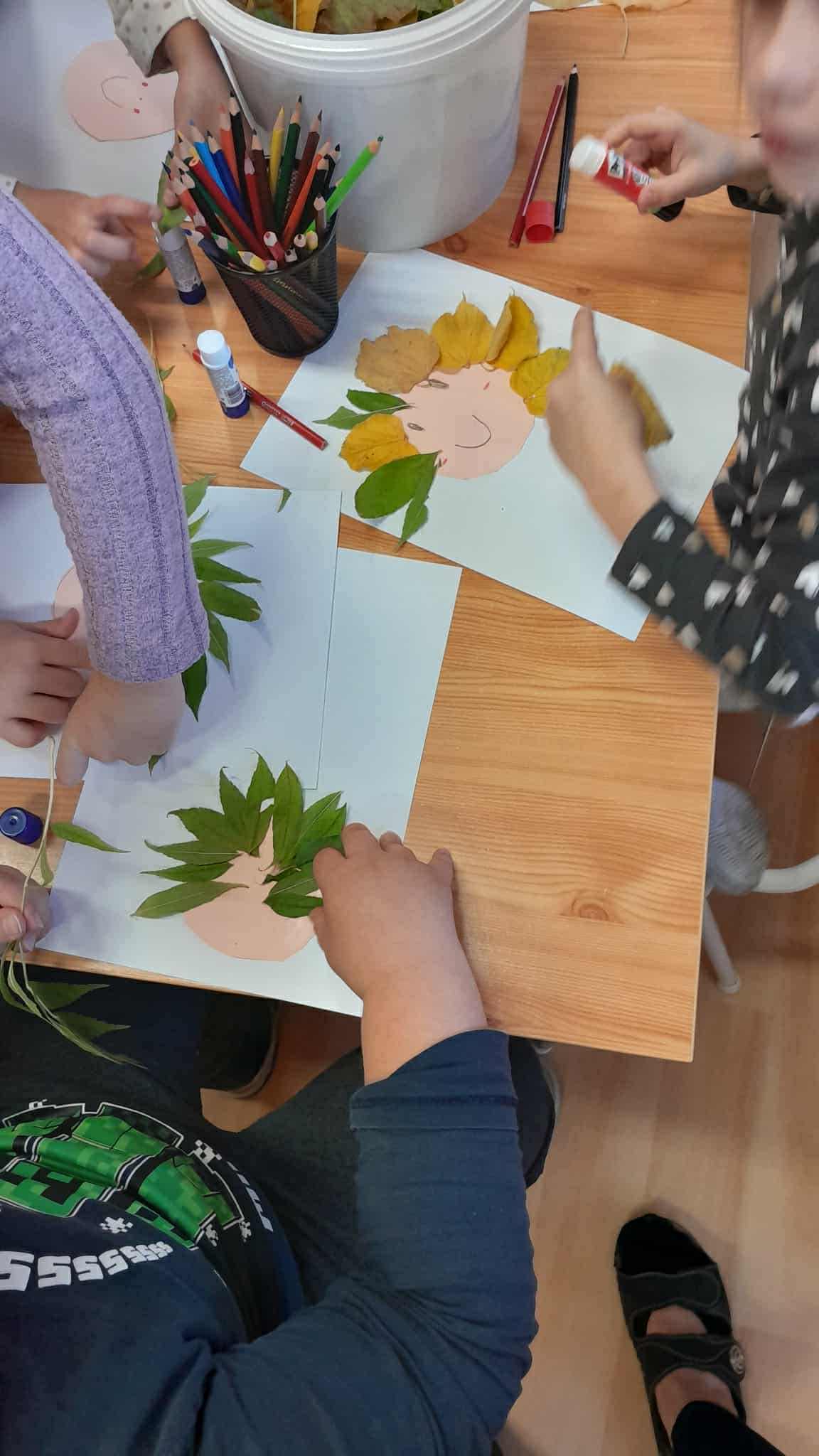Az ősz témakörén belül a boldogságóra anyagát feldolgoz átbeszéltük a gyerekekkel, hogy mi is az az optimizmus, majd vizuális nevelés során optimista levélképeket készítettünk. Megnéztük, hogy milyen jó hatással van a mosolygás. Az időjárással kapcsolatban mondtunk példát arra, hogy minden rosszban van valami jó, például a gyerekekkel megbeszéltük, hogy milyen jó, hogy ősz van, lehullottak a falevelek, és mi csodálatos képeket készíthetünk belőlük. Sorra el is készültek a csodálatos alkotások, és bár fel volt ajánlva, hogy lehet mosolygós, vagy szomorú arcot készíteni, mindenki mosolygós arcú virágot, vagy oroszlánt készített.