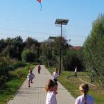 A mostani háromnapos projekt kezdetén a „Szép nap, ölelj most át engem” kezdetű dal volt a bevezető. Ennek nyomán indult a beszélgetés arról, milyen érzés az ölelés, mikor szoktunk valakit megölelni. Érdekes volt, hogy most felmerült a kérdés, hogy mit tegyünk akkor, ha valakit nem szívesen ölelünk meg. A következő alkalom egy relaxációs program volt, amikor a „Szép nap, ölelj most át engem” kezdetű dalt az óvoda udvarának egy csendes, napos, füves területén hallgattuk meg. A gyerekek pokrócokat terítettek le a földre, úgy helyezkedtek el, hogy ne érjenek egymáshoz. Hanyatt fekve hallgatták a zenét. Utána kis beszélgető körben mesélhették el, milyen érzés volt így befogadni a napfény „ölelését”. Harmadik napon egy kis kirándulást tettünk a közeli rétre, ahol ismét a napfény várt minket. Szalmabálára mászhattunk, sárkányt eregethettünk. Több gyermek későbbi rajzában megjelentek ezek az események. Kérdésre, hogy miért mosolyog mindenki a rajzodon; széles mosollyal érkezett a válasz: Mert boldogok!