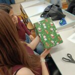 Először is játékos szórejtvények segítségével ki kellett találniuk a hónap témáját, majd megnéztünk közösen egy német nyelvű filmet a „karácsonyi cipősdoboz” akcióról, ami természetesen nem csak Magyarországon, hanem Németországban is megtalálható. A film megnézése közben egy egyszerű sorbarendezős feladatot is meg kellett oldaniuk. Ezt követően a feladatlapjukon találtak különböző felsorolásokat, és el kellett dönteniük, hogy szerintük belekerülhet-e egy ilyen tárgy a cipősdobozba vagy nem. Miután mindent átbeszéltünk, és a feladatot is kiértékeltük, megkérdeztem a tanulóktól, hogy van-e kedvük összeállítani egy ilyen ajándékot. Nagyon megtetszett nekik az ötlet, és végül úgy döntöttek, hogy ne csak egy, hanem kettő cipősdobozt készítsünk egy kislány és egy kisfiú részére is.