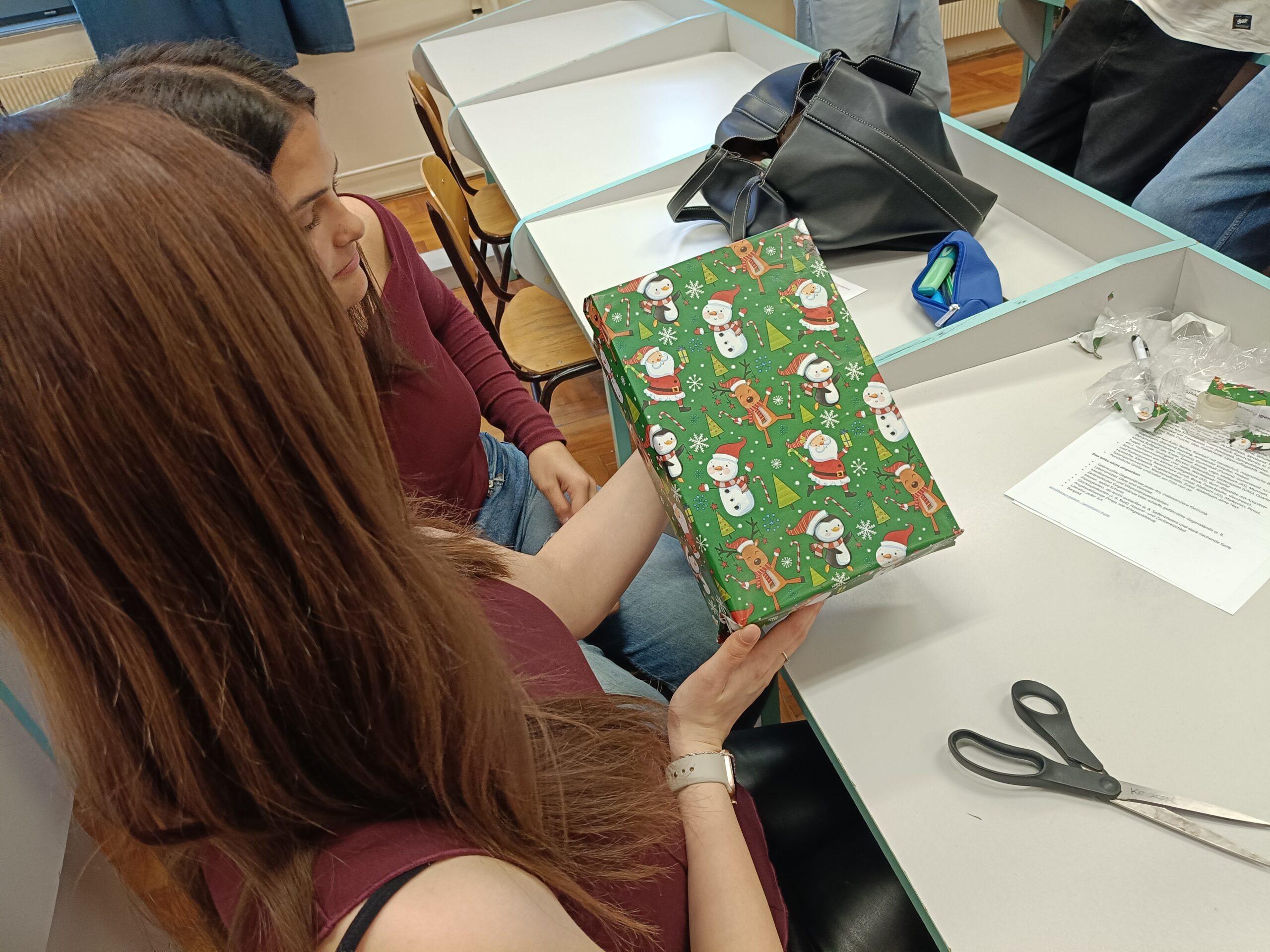Igazi csapatmunka volt, hiszen közösen eldöntötték, hogy ki mit vesz, készítettek egy-egy karácsonyi üdvözlőlapot is, amit mindenki aláírt, és szépen becsomagolták a cipősdobozt. A tanulók végig nagyon lelkesek voltak, és nagyon örültek, hogy karácsonykor két gyereknek is örömet okozhatnak.