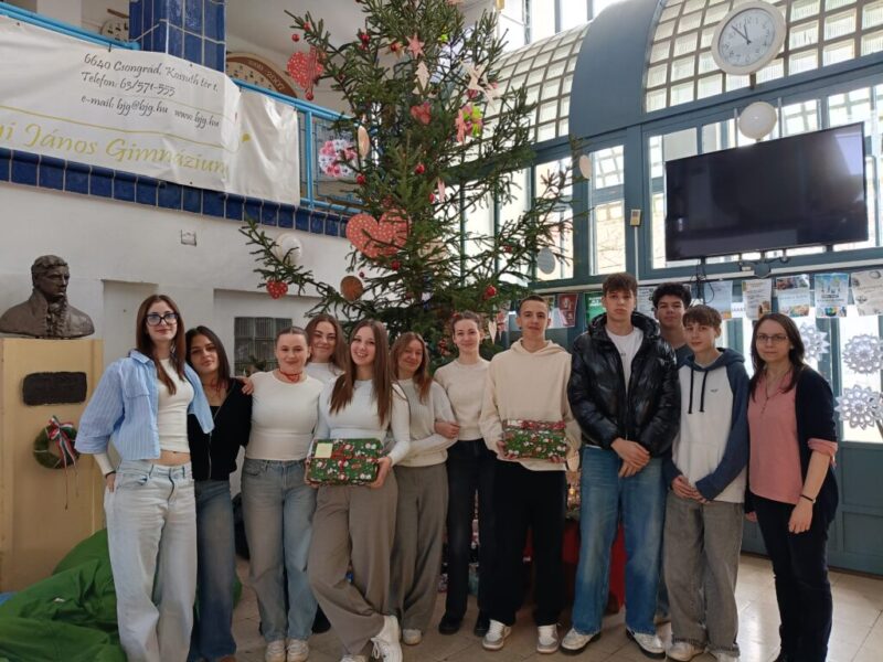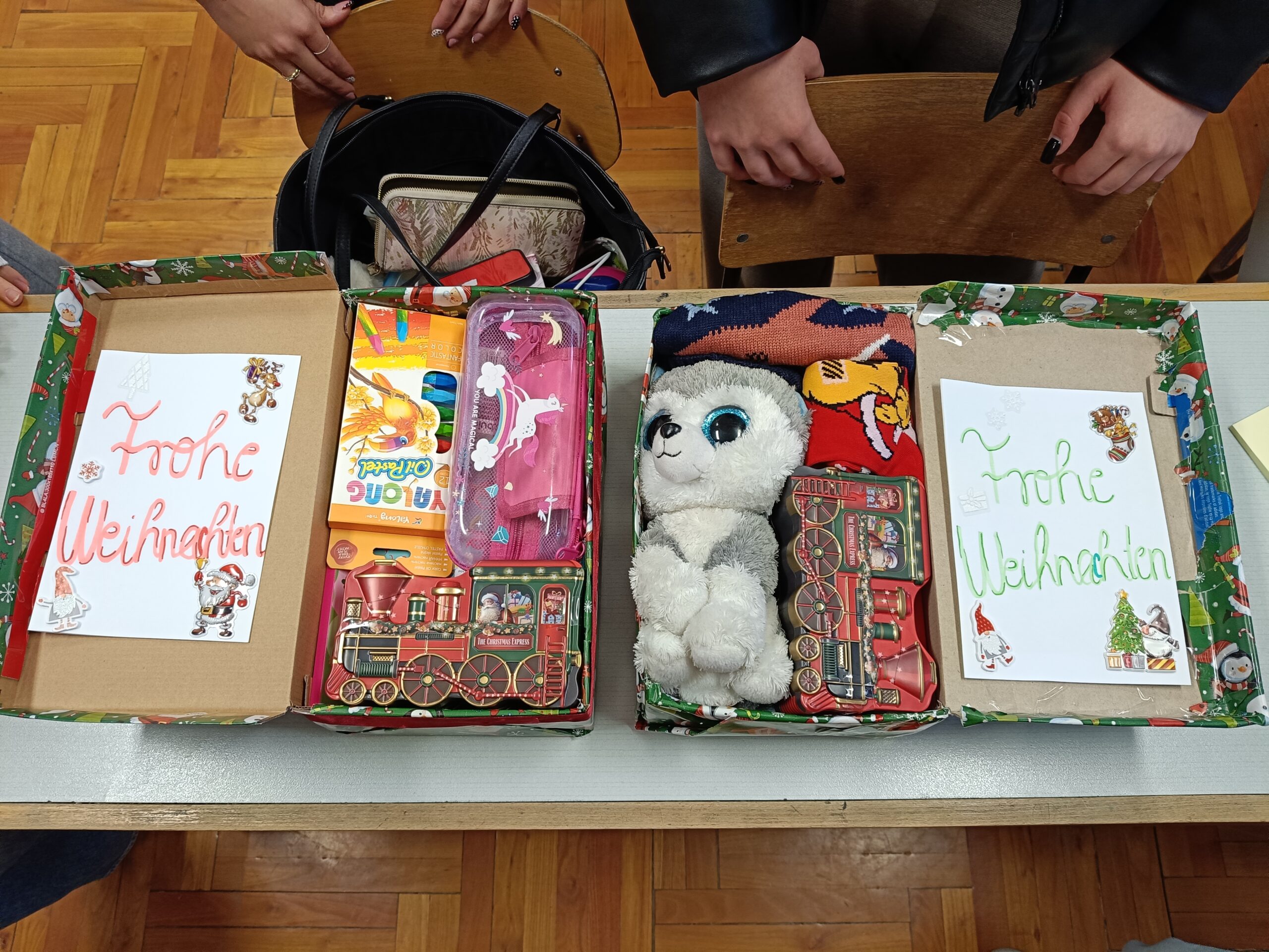 December hónap témája a „Boldogító jócselekedetek”, ezért úgy gondoltam, hogy a németes csoportommal csatlakozunk Csongrád város „karácsonyi cipősdoboz” akciójához. Az volt a tervem, hogy a csoport közösen összeállít egy cipősdoboznyi ajándékot, amit majd eljuttatunk egy rászoruló gyermek részére, hogy karácsonykor örömet okozhassunk neki. A tanulóknak ezt az óra elején még nem árultam el.