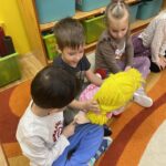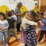 A boldogságórán beszélgettünk az érzelmekről, a jó és kellemes érzések felismeréséről, a gyerekekkel kendő alá bújtunk, és a kissé rossz kedvű hangulatunkat egy vidám mondóka segítségével jókedvre cseréltük. Játszottunk egy játékot is, amelyben egy rossz kedvű társunkat próbáltuk felvidítani, így gyakorolva, hogyan tudunk egymásnak örömet szerezni és optimistán fordulni a másik felé.