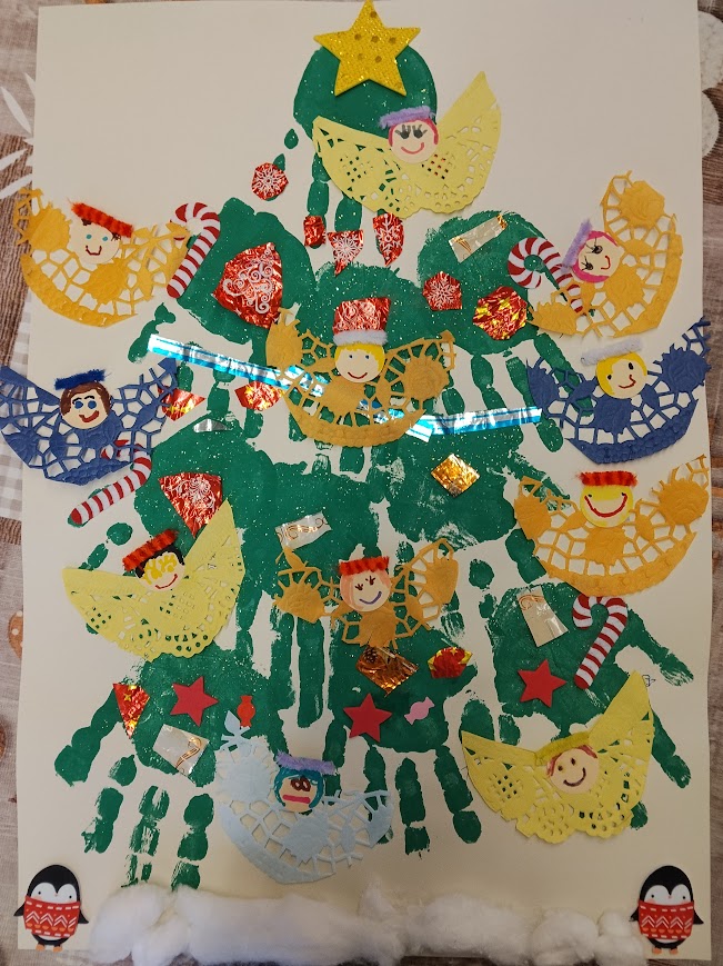 A gyermekek szeretetük jeléül, egy angyalkákat készítettek, mellyel mindenki megajándékozhatta egy társát a csoportban. Az angyalkák később a közösen elkészített karácsonyfánkat díszítették.