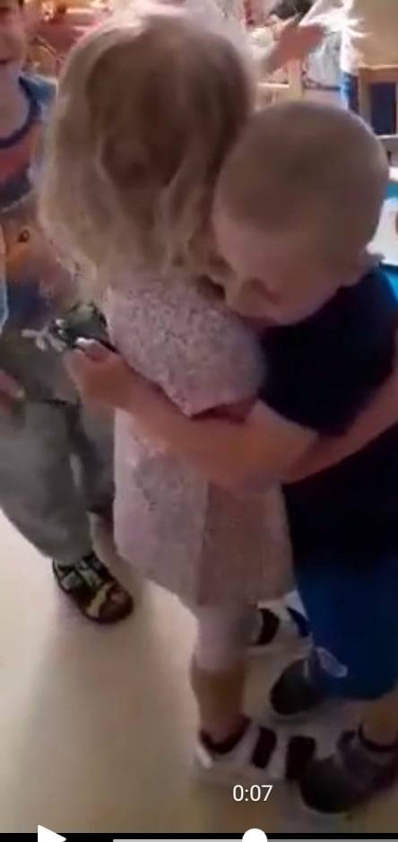 „Szeretet átadása” játékot tanultunk. „Zöld fű a lábam alatt” dalra, pár gyermek letakart testtel áll a kör közepén, a dal végén oda megy valakihez és tapintással, hang adással kitalálja kit választott és megöleli őt. A dal után, taxis játékot játszottunk ami a bizalomra épül. Egymást kellett vezetni karikába nyitott majd csukott szemmel. Aztán megbeszéltük, milyen érzés volt vezetni vagy vezetve lenni. A játék végén mindenki készíthetett valakinek kis ajándékot (rajz, virág ragasztás, stb). Ehhez sok eszközt kaptak amivel dolgozhattak. a munka végén megajándékozhatták egymást.