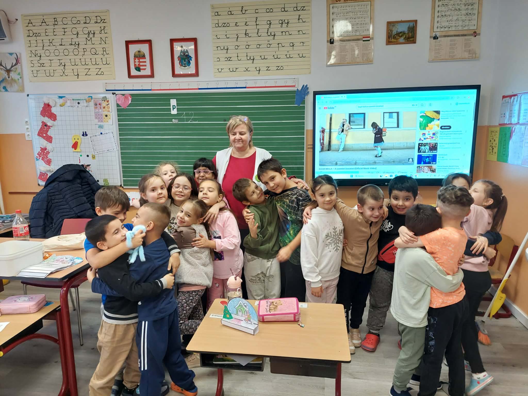 Az elsősök a tanító nénivel együtt vártak a megbeszélt időpontban. Már előkészítették a hónap zenéjét az okostáblán. Mielőtt meghallgattuk volna kíváncsi voltam arra, hogy hogyan telt a gyerekeknek az előző hetük, a Mikulásvárással. Nagyon örültek a kérdésemnek, mert csak úgy záporoztak felém a válaszok. Mindenkinek volt valamilyen pozitív élménye. Már a karácsonyra készülnek az iskolában is. Készítettek szebbnél szebb adventi koszorúkat a gyermekek, amit haza is vihettek. Arra is kíváncsi voltam, hogy ki szokott otthon segíteni a szüleinek most, hogy jön a karácsony. Többen mondták, hogy ők már sütöttek közösen mézeskalácsot és a takarításban, rendrakásban is segítenek. A szobáikat feldíszítik közösen.