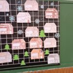 Így már kellő hangulat volt a mézeskalács falu elkészítéséhez. Az egyéni jókívánságok megjelentek a házacskák falain is. A hónapot közös énekléssel zártuk.