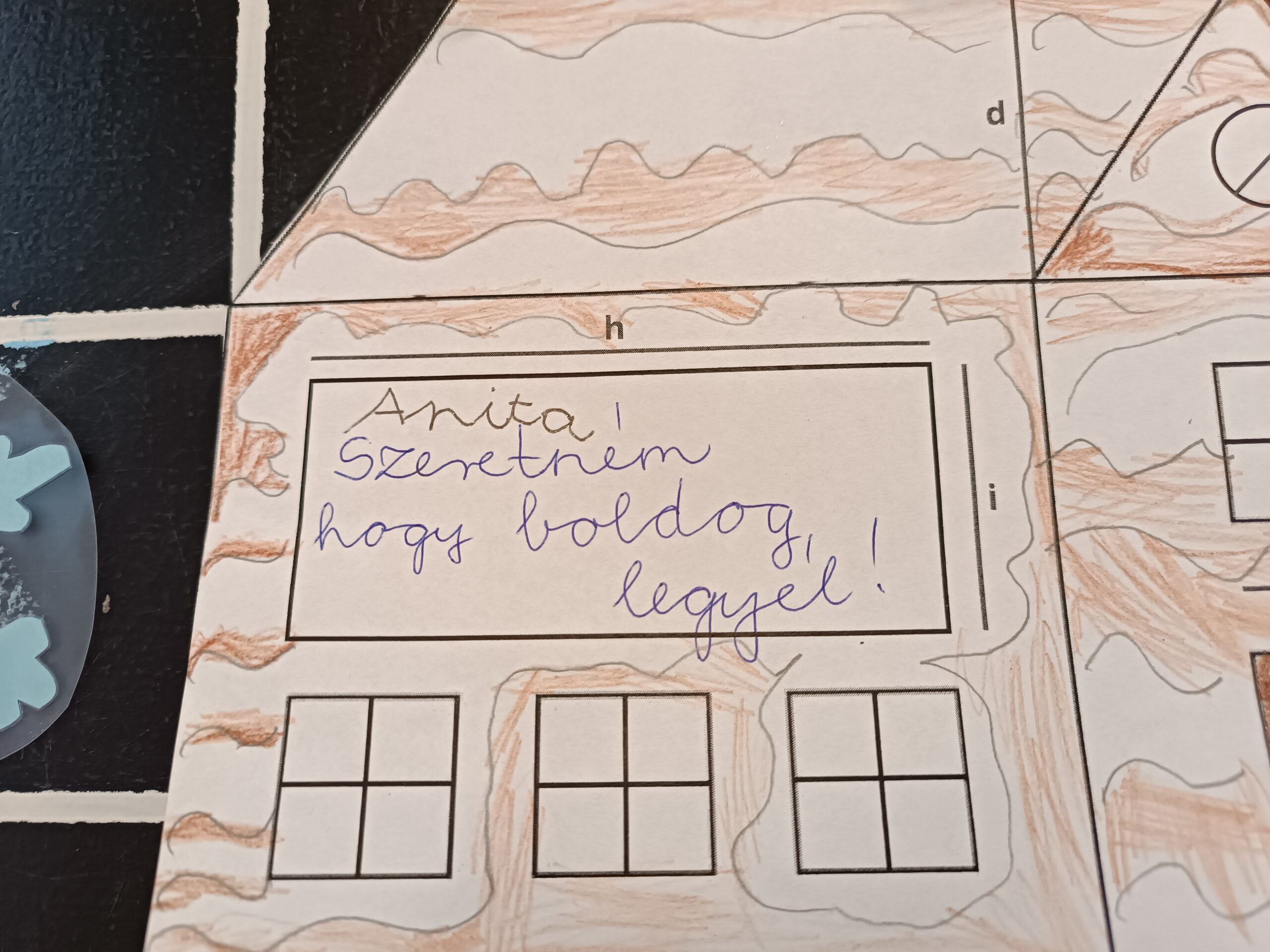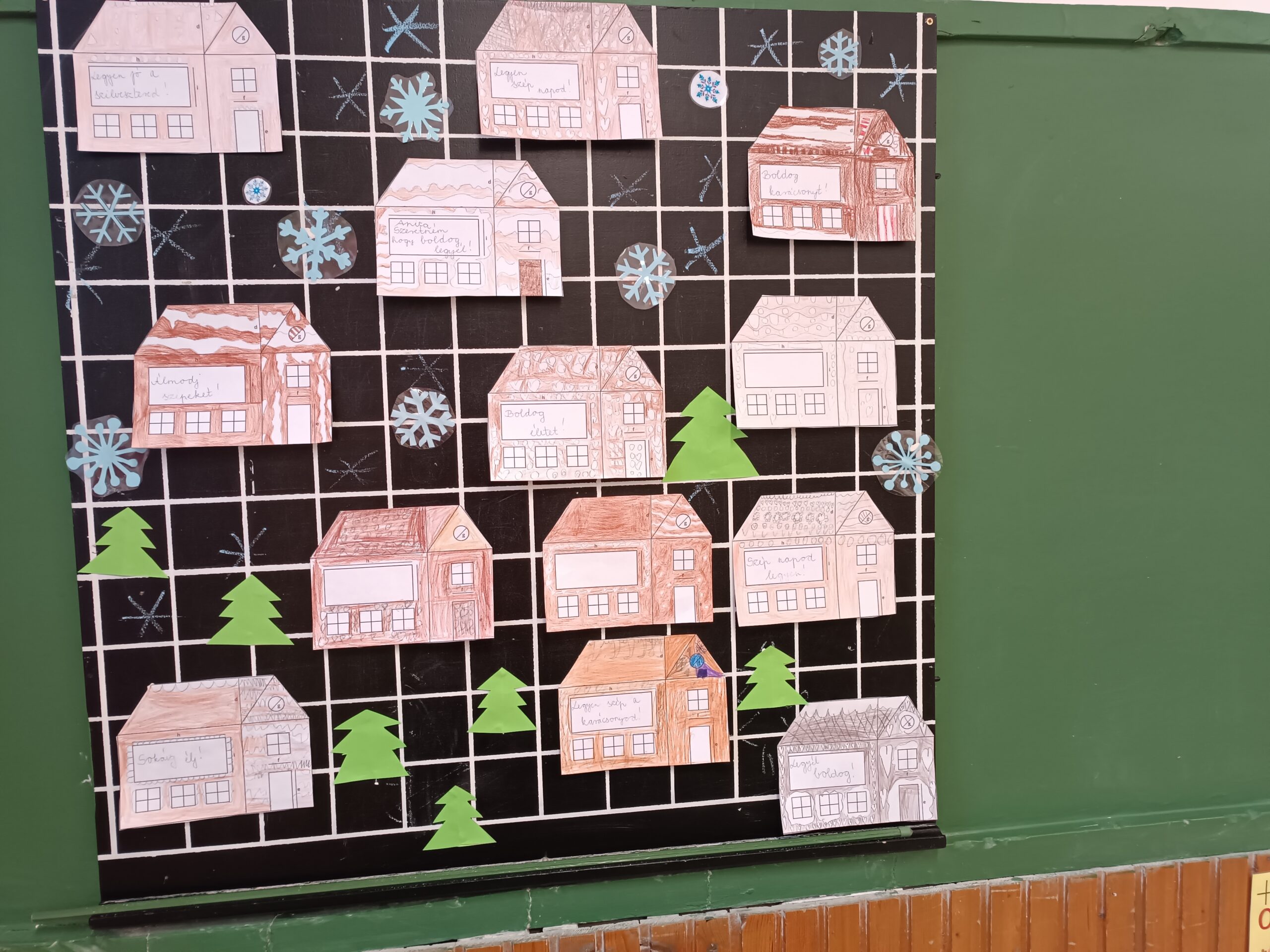 Így már kellő hangulat volt a mézeskalács falu elkészítéséhez. Az egyéni jókívánságok megjelentek a házacskák falain is. A hónapot közös énekléssel zártuk.