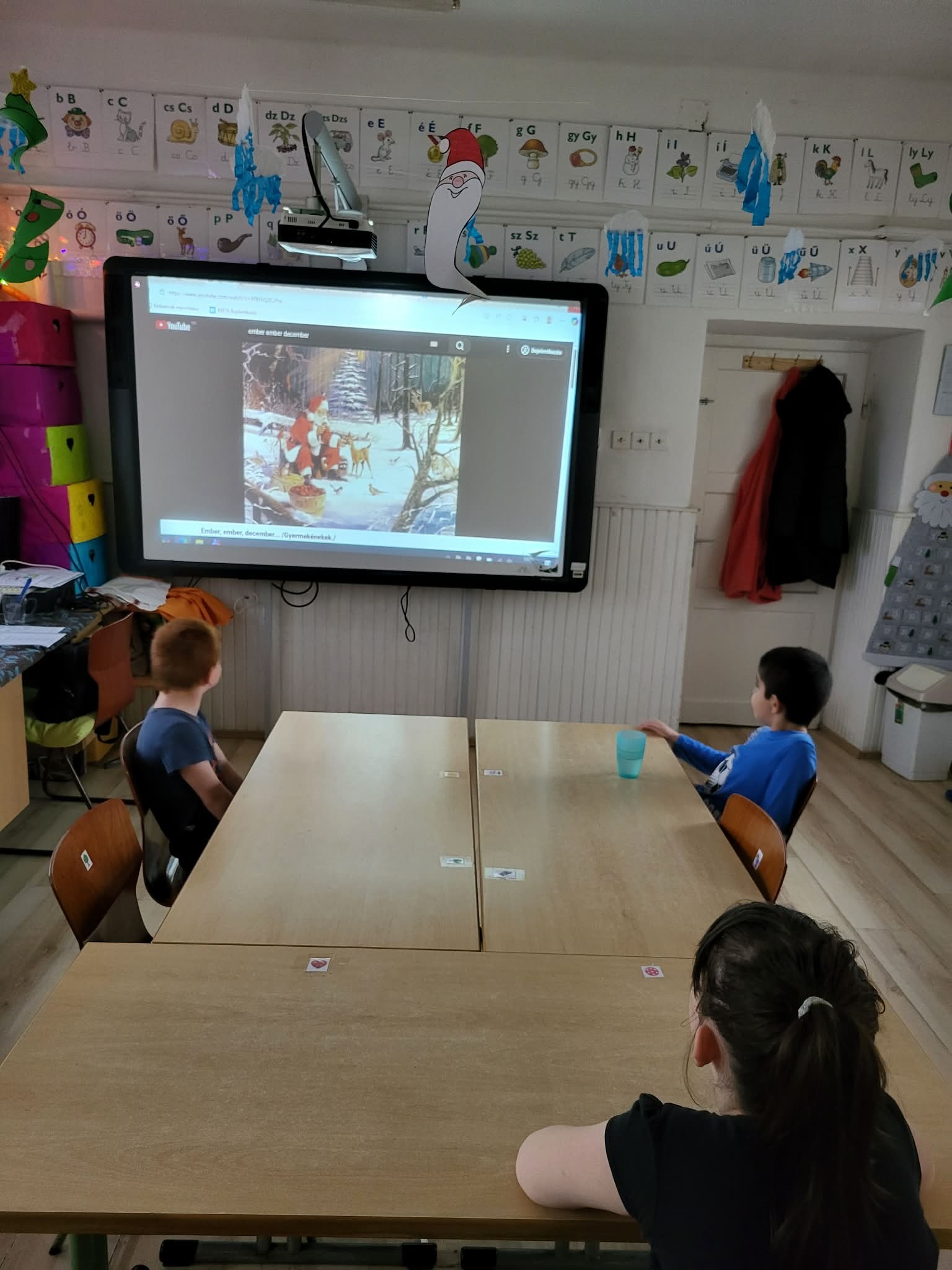 A Decemberi hónapunk a jó cselekedetekkel és a Karácsony várásával telt az 1. osztályban, értelmileg akadályozott gyermekek körében. Itt minden sokkal bensőségesebb és sokkal varázslatosabb, mint egy normál osztályban. Először is szebbnél szebb karácsonyi dalok hallgatása közben ráhangolódásként meghallgattuk a hónap dalát. Majd megismertük Zelk Zoltán : Mikulásbácsi csizmája című mesét, amit nagy figyelemmel néztek, és a végén a kérdésekre próbáltak kisebb nagyobb sikerrel válaszolni. A mellékletből a keresgélős feladatot többnyire élvezték, igaz nem lett meg mind a 12 különbség, de azért szépen kezdték kiszínezni a képeket és erre felbuzdulva a mézeskalács házikót is elkezdték színezni, aminek a hiányzó részeit szépen a helyére illesztették. Nagy siker volt hogy jól csinálták, a dicséretnek örültek a legjobban. Majd jóízűen elfogyasztották a finom mézeskalácsokat, amit sütöttünk. Így telt hát nálunk a mi kis osztályunkban a Karácsony várása, nagy szeretettel.