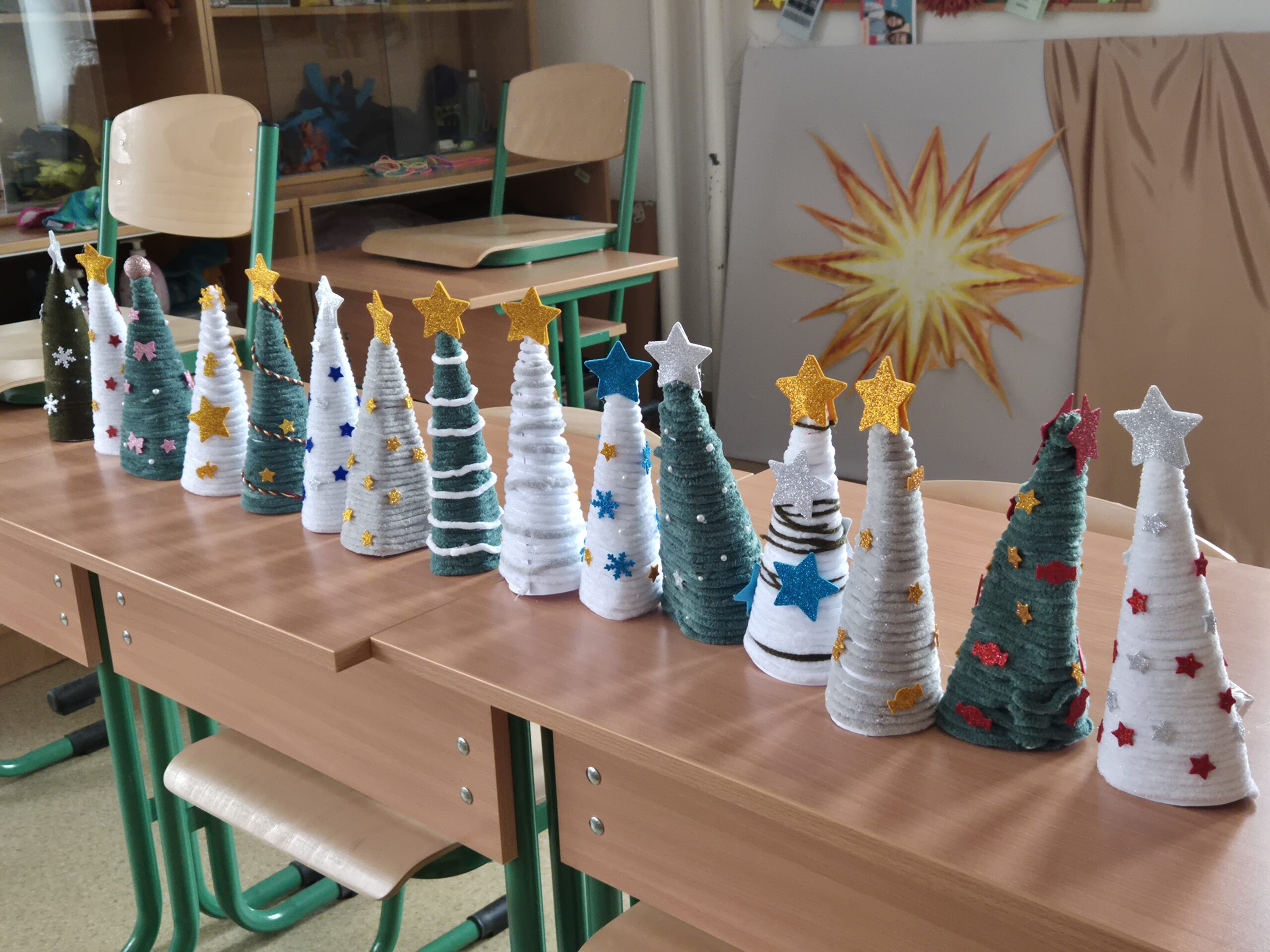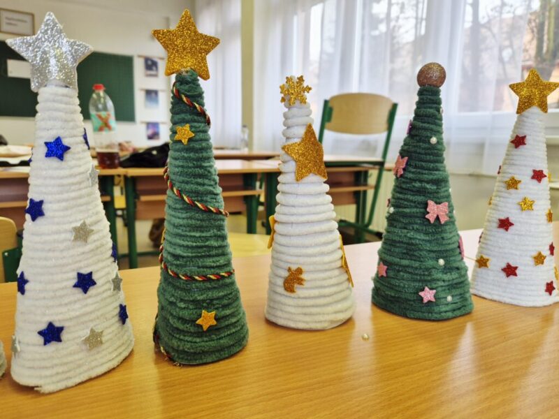 Az utolsó tanítási napot kézműveskedésre, korcsolyázásra fordítottuk. A csoport minden tagja választhatott számára szimpatikus színű fonalat, díszítőanyagot annak érdekében, hogy egy-egy családtagjának vagy kedvenc tanárának elkészíthessen egy karácsonyfát. Öröm volt látni, ahogy ötleteltek kinek, kiknek készítsenek még, így nem álltunk meg egynél. Ha pedagógusnak ajándékoztak, megbeszélték ki, kik adják oda. A nap vége felé, pedig az én hálám sem maradhatott el feléjük, így a korcsolyapálya felé vettük az irányt, hogy egy igazán jó lezárása lehessen a napnak.