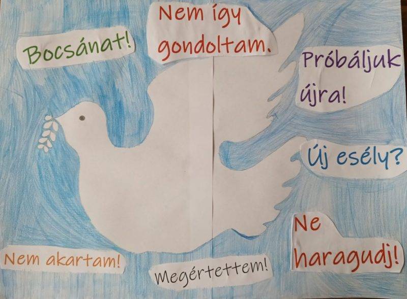 Ennek megvitatásával ábrát készítettünk örömeinkről. Megkértem a gyerekeket, körökbe írják a boldogságot okozó tevékenységeket, de a körök mérete utaljon arra, hogy melyik jelent számukra több örömöt. A foglalkozást egy a témát jelképező plakát színezésével zártuk. A megbocsátás kérdőív arra hívta fel a figyelmet, hogy a gyerekeknek kicsit jobban figyelembe kellene venni a környezet visszajelzéseit és nem csak saját szempontjaik szerint kellene viselkedniük.Ha tudatosan dolgoznának a sérelmeiken való túllépésen is és több szeretettel fordulnának mások felé, saját életüket is könnyebbé tennék.