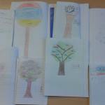 A gyerekek kapcsolati fát rajzoltak. Ráírták azokat, akik közel állnak a szívükhöz, s hogy ki mennyire, azt különböző színnel jelölték.