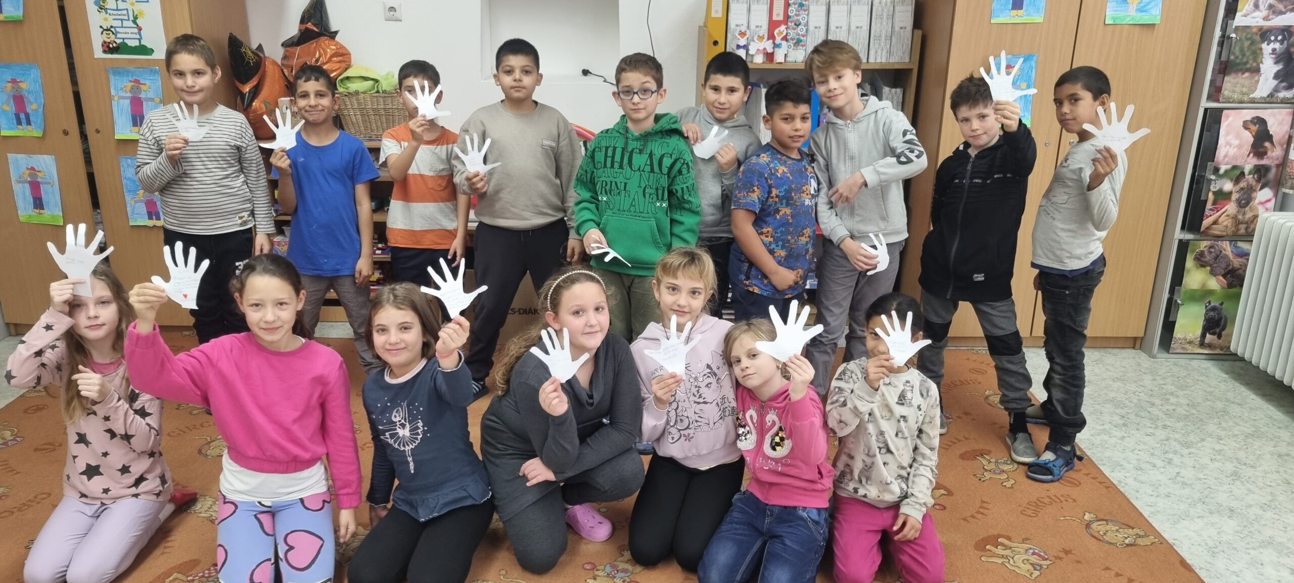 A hónap Boldogságóráinak fő témája a társas kapcsolatok megismerése, megerősítése és tudatos ápolása volt. A foglalkozások elején arról beszélgettünk, miért olyan fontosak számunkra más emberek, és miért van természetes igényünk arra, hogy közösségben legyünk. A gyerekek több saját példát is említettek arról, mikor érzik magukat igazán jól társaságban: például amikor együtt játszanak a barátaikkal, amikor valaki meghallgatja őket, vagy amikor sikerül megbeszélniük egy vitát. Megfogalmaztuk, hogy az emberi kapcsolatok akkor tudnak erősek maradni, ha időt és energiát fektetünk beléjük, és folyamatosan gondozzuk őket. Hangsúlyoztuk, hogy a jó kapcsolat nem magától értetődő, hanem törődést, figyelmet és sokszor türelmet igényel. Szó esett arról is, hogy minden kapcsolatban előfordulhatnak konfliktusok. A gyerekekkel közösen megbeszéltük, hogy a vitákat kedvességgel, őszinteséggel és közös szándékkal meg lehet oldani. Hétköznapi példákat is hoztunk: amikor valaki véletlenül megbánt egy barátot, de egy bocsánatkérés vagy egy kedves gesztus helyrehozza a helyzetet. Beszéltünk arról is, hogyan segíti a társas intelligencia azt, hogy jobban megértsük mások érzéseit, és empatikusabban reagáljunk egymás dolgaira. Elolvastuk a csapatmunka és a társas intelligencia erősségmondókáit. Ezek kapcsán beszélgettünk arról, hogyan működik a csapatmunka a mindennapokban: például amikor az osztály együtt készül egy műsorra, vagy amikor egy sportcsapat tagjai egymást bátorítják a versenyeken. A gyerekek több saját élményt is megosztottak arról, mikor segítette őket egy társuk. Alkotófeladatként tenyérlenyomatokat készítettünk, amelyeket kinyírtunk, és egymásnak írtunk rá bátorító, személyre szóló üzeneteket. Szívhez szóló mondatok születtek, például: „Bízom benned, meg tudod csinálni!”, „Szerintem ügyesebb vagy, mint gondolod!”, vagy „Nagyon örülök, hogy a barátom vagy!”. A gyerekek láthatóan büszkék voltak a nekik szóló üzenetekre, és örömmel olvasták őket. Ezután mondat befejezős feladatot végeztünk, amely segítette az érzések megfogalmazását és az egymással való őszinte kommunikációt. Olyan mondatokat fejeztek be, mint „Annak örülök…”, „Attól tartok…”, „Arra vágyom…”, „Az bosszant…”. A gyerekek nyitottan beszéltek arról, mi teszi őket boldoggá, mi okoz bennük félelmet, vagy éppen mi esik rosszul nekik. Ez sok megértést és együttérzést hozott az osztályban. Készítettünk egy erősség-fát is. Egy kopasz fát nyomtattam, melyet a gyerekek az ősz színeiben készült levelekkel ragasztottak tele. A levelekre olyan tulajdonságokat írtunk, amelyek szerintük valakinek az erősségei lehetnek; például: kedves, türelmes, szavahihető, kitartó, játékos, illemtudó, titoktartó, érdeklődő, bátorító vagy megnyugtató. A feladat során nagyon sok pozitív tulajdonság gyűlt össze, és a gyerekek ráébredtek arra, hogy mindannyiuknak vannak értékes, mások számára is fontos erősségei. Felolvastam az Önbizalom hely és a pozitív kapcsolatok című szöveget is, amelyek rávilágítottak arra, hogyan hat a magabiztosság és az odafigyelő viselkedés a kapcsolatainkra. A gyerekek sok saját példát is megfogalmaztak arról, mikor érezték azt, hogy valaki támogatása vagy elismerése erőt adott nekik. Nagy lelkesedéssel hallgatták a Pillanatkapitány és a három próbatétel című történetet. A mese tanulságait közösen elemeztük, és megbeszéltük, hogyan segít a szeretet, a segítőkészség és a kitartás a nehéz helyzetekben. A történet annyira megfogta őket, hogy felvetették: jó lenne az iskola udvarán egy barátságpad, ahová bárki leülhetne, ha társaságra vagy egy jó szóra vágyik. Egy másik alkalommal elolvastuk a Görög mese a barátságról című történetet is. A mese tanulsága az, hogy csak olyan dolgokat osszunk meg másokról, ami hasznos információ, jó dolog és biztosak vagyunk abban, hogy igaz is. A gyerekekkel együtt összefoglaltuk, hogy a barát nemcsak az, akivel jó játszani, hanem az is, aki meghallgat, aki megért, aki vigasztal, és aki jóban-rosszban mellettünk áll. A Boldogságóra munkafüzetben megoldottuk a „Kik vesznek téged körül?” című feladatot is. A gyerekek felsorolták, kik gondoskodnak róluk, kikre számíthatnak, kik azok, akiktől tanulnak, vagy éppen, akik segítik őket. Megnevezték szüleiket, nagyszüleiket, testvéreiket, tanáraikat, edzőiket és barátaikat. Többen személyes történetet is megosztottak arról, amikor valaki melléjük állt, vagy amikor egy barátjuk támogatása, kedves szavai nagyon sokat jelentett nekik. A három alkalom nagyon tartalmasan és jó hangulatban telt. A gyerekek aktívan, őszintén és lelkesedéssel vettek részt minden feladatban. A foglalkozások végére sokan megfogalmazták, hogy mostantól jobban szeretnének odafigyelni egymásra, több kedvességet adni, és tudatosabban ápolni a barátságaikat. A téma mindannyiuknak sok felismerést hozott arról, hogy a társas kapcsolatok kincsek, és rajtunk is múlik, mennyire lesznek szépek, tartósak és szeretettel teliek.