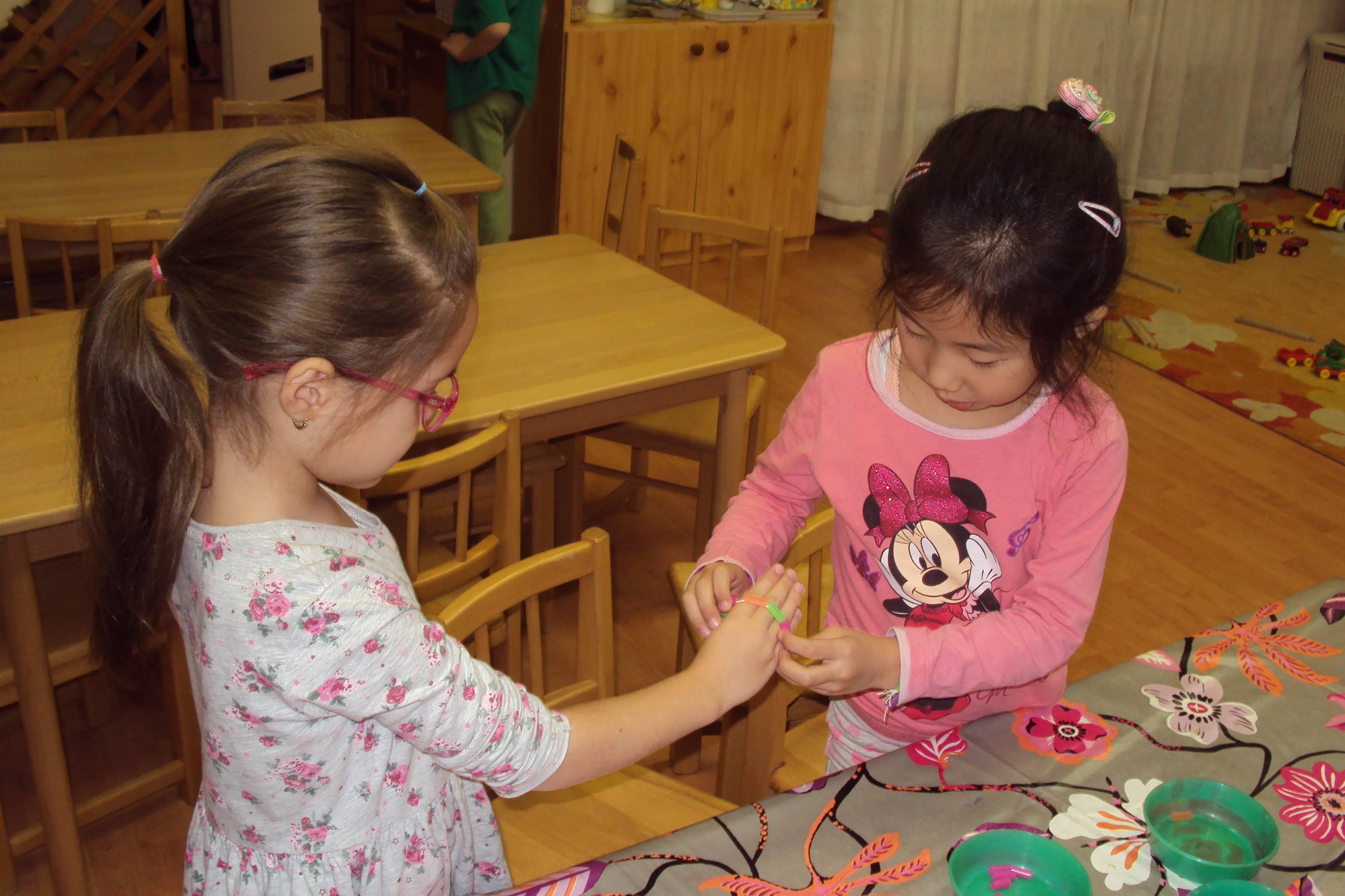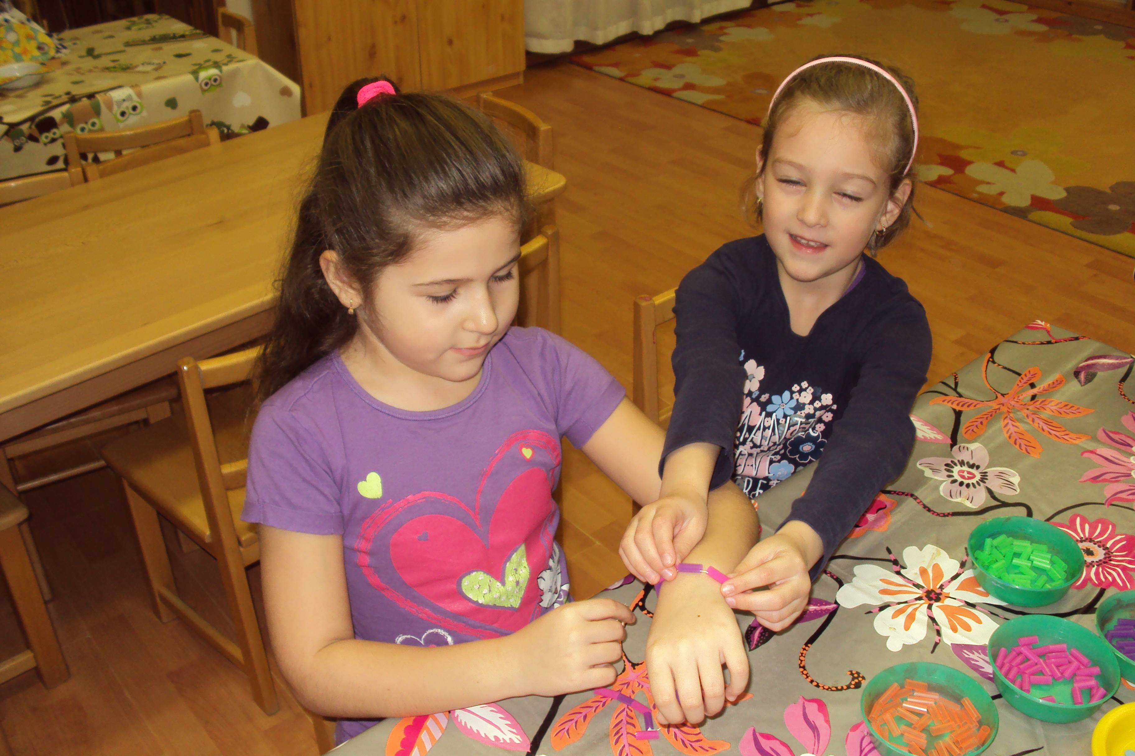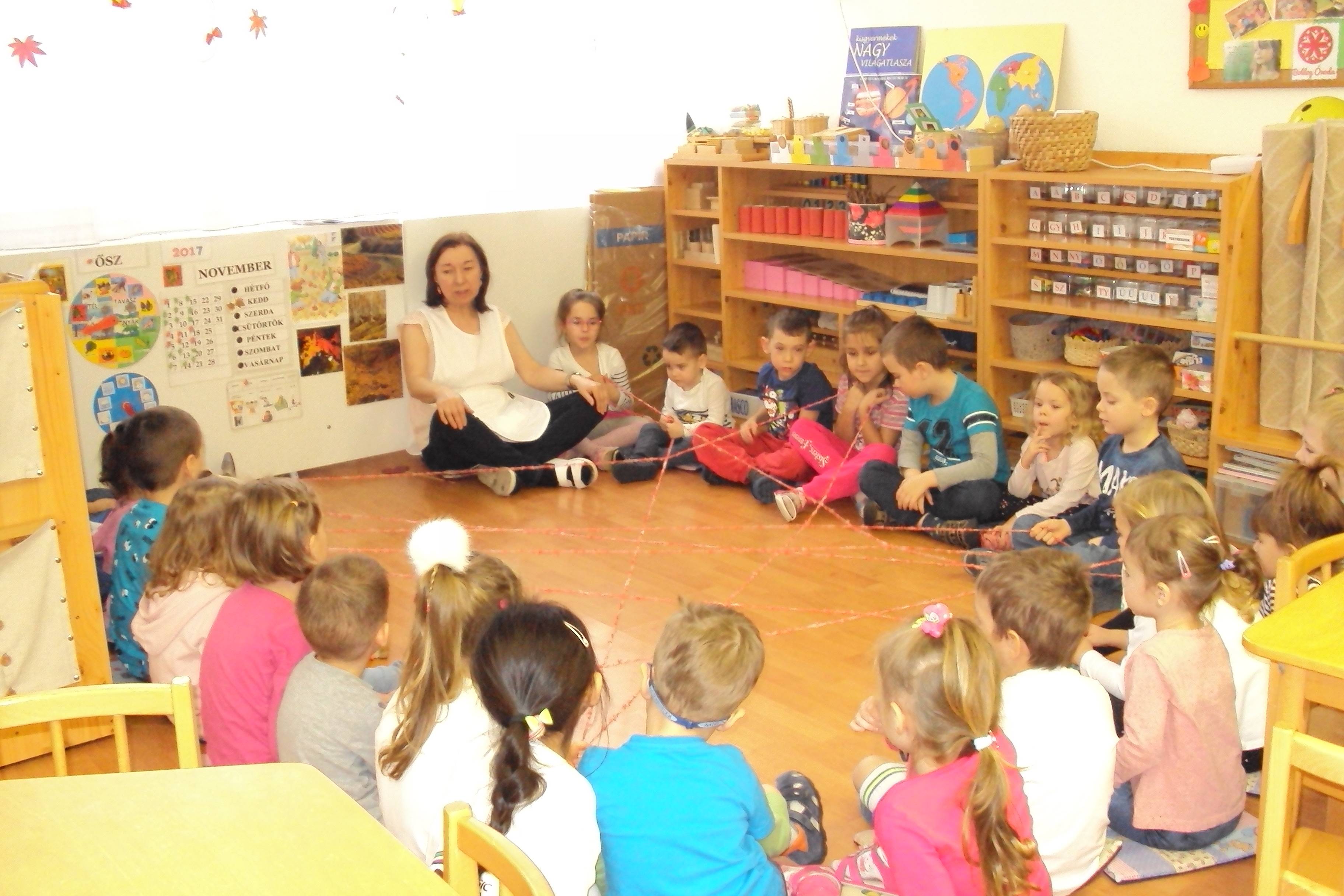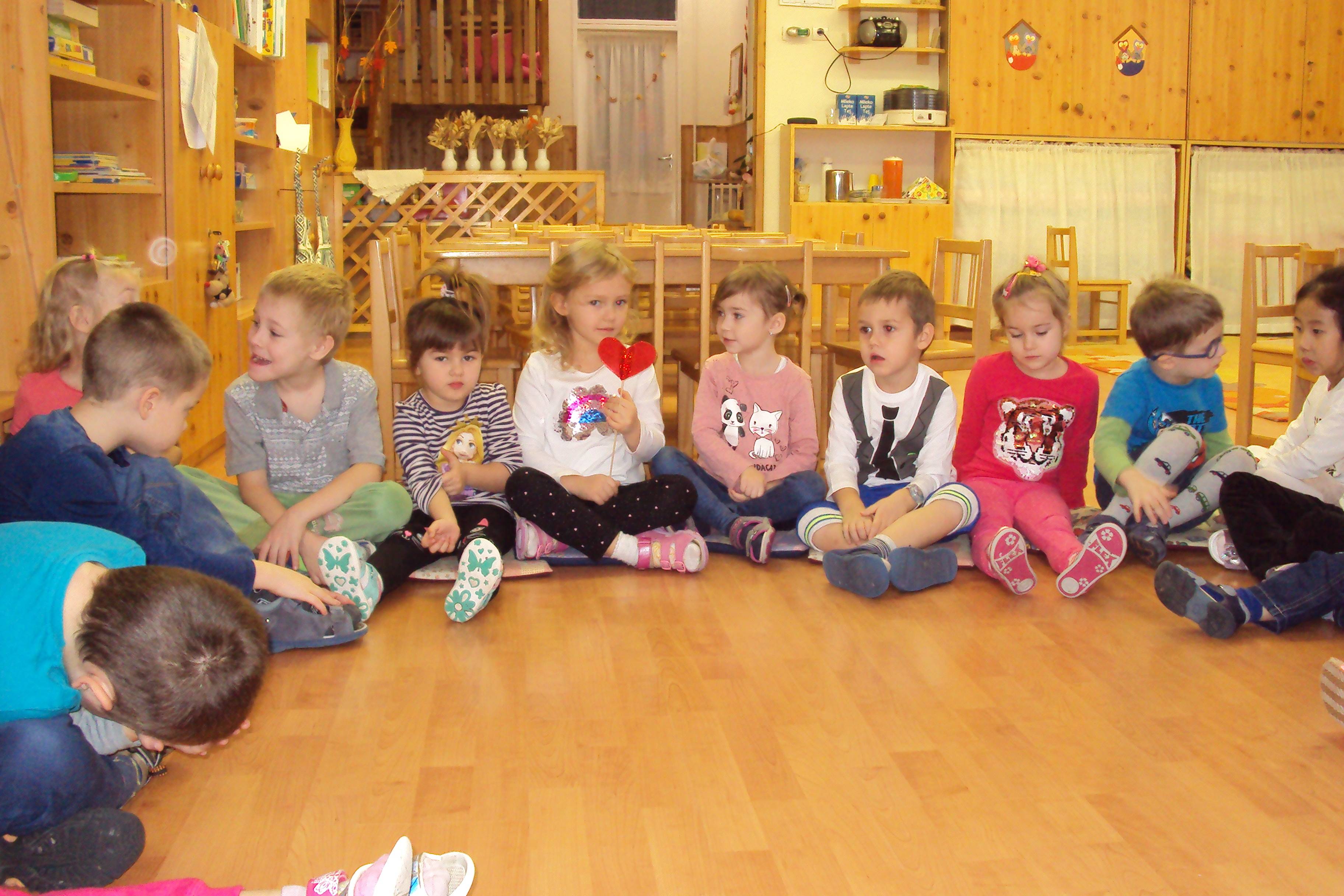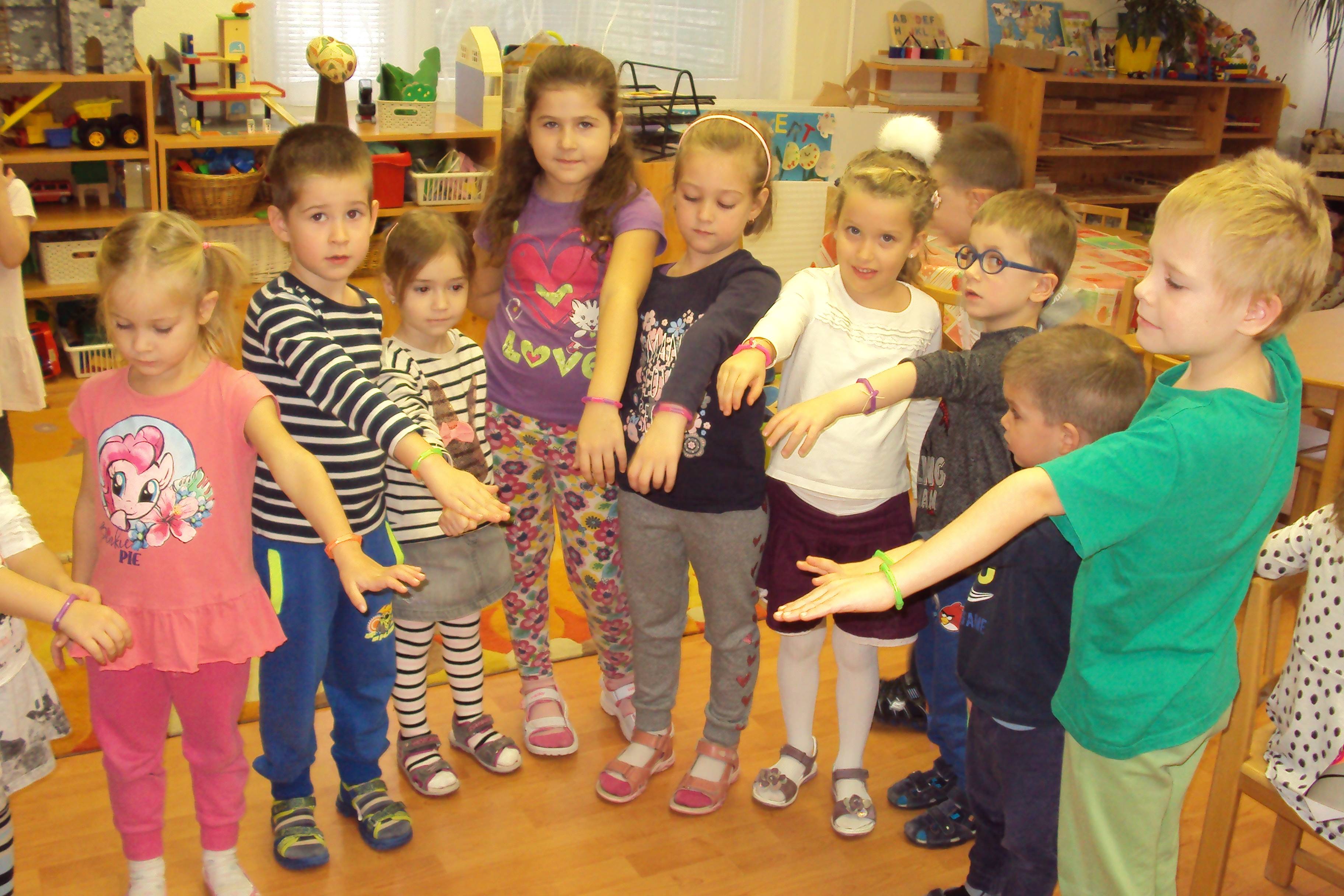 A novemberi boldogságórán először a baráti kapcsolatokról beszélgettünk. Először egy szívecske körbeadásával eljátszottuk, a „kis barátom, hogy vagy?”… játékot. A nagyobbak közül néhányan a „köszönöm jól vagyok” válaszon kívül már meg is indokolták, hogy miért érzik jól magukat pl. „köszönöm, jól mert bábszínházba megyünk és a kedvenc mesémet a Vukok nézzük meg; mert ma van a testvérem névnapja; ma fogom megkapni az új pólómat; XY együtt játszott velem és közösen építettünk egy szép várat”. Ezt követően a beszélgető körben a gyerekek elmondták, hogy miért tartják fontosak a barátokat. Elmondhatták, hogy ki a barátjuk, megfogalmazták például, hogy a barátok sokat játszanak együtt, segítenek és megvigasztalják egymást, beszélgetnek egymással, megfogják egymás kezét, megölelik egymást, sokat nevetnek együtt, nagyon jó érzés, ha vannak barátaink. A konfliktus helyzetekre is kitértünk, amely során fontosnak tartották, hogy veszekedés után megbeszéljék egymással a történteket, egyezzenek meg és béküljenek ki. Nagyon tetszett a gyerekeknek, amikor gombolyag körbeadásával „pókhálót” készítettünk, közben kedves szavakkal indokolták meg, hogy mit szeretnek a másikban. Az elkészült háló erősítette a közösségi érzést és az összetartozás fontosságát. A baráti kapcsolatok erősítését barátságkarkötő készítésével is erősítettük, amely lehetőséget adott arra, hogy saját készítésű ajándékot adjanak a másiknak. A tevékenység nagy örömet okozott a készítőjének és az ajándékozónak egyaránt. Tevékenység közben meghallattuk „Ha boldog vagy, mutasd meg mindenkinek” című dalt, amely által még kellemesebb hangulatban telt a délelőtt!
