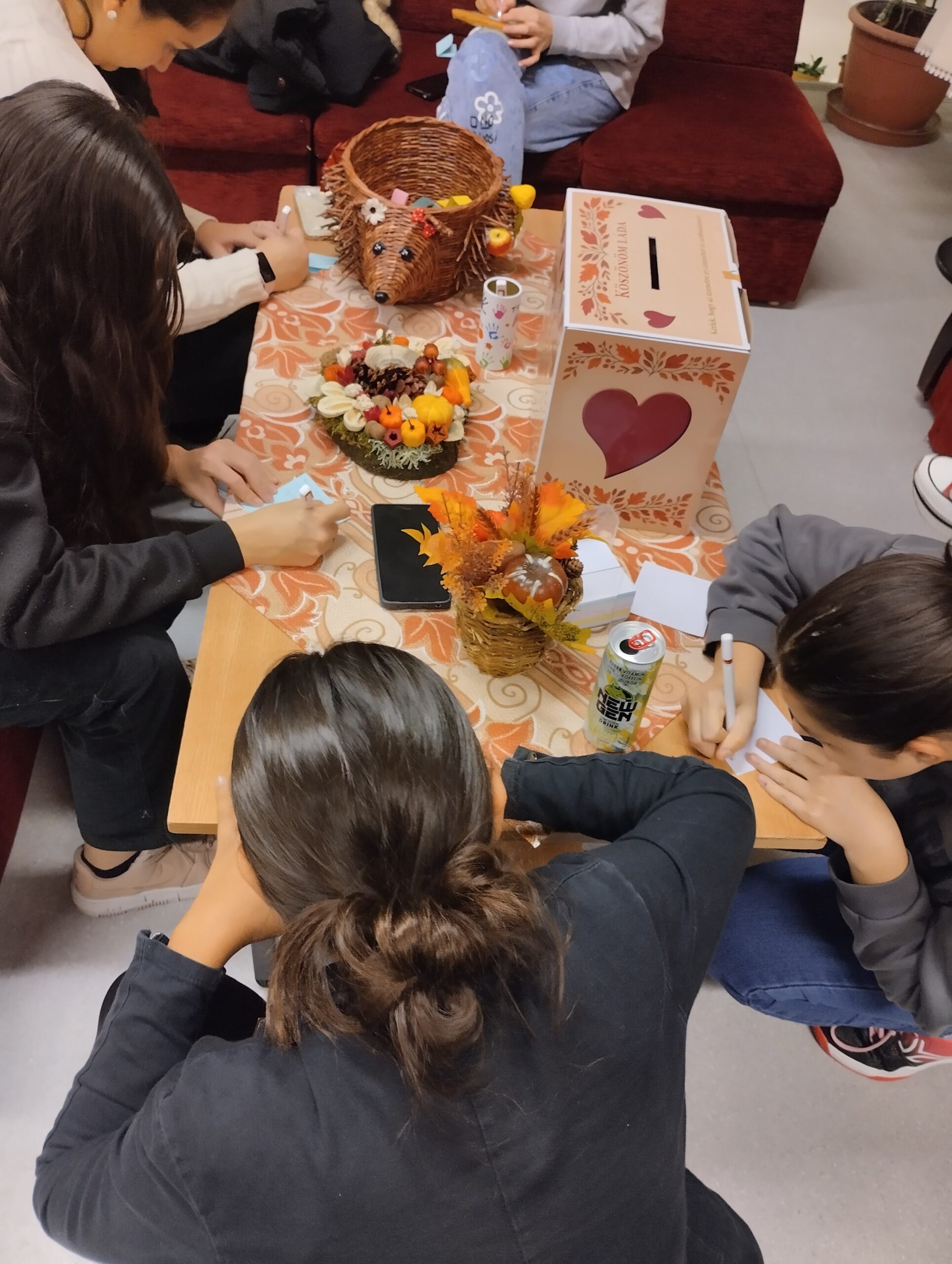 A csoportomban mindenki húzott egy nevet, és akit húzott, annak az angyalkája lesz a karácsonyi szünetig. A feladat, figyelni jobban a másikra, segíteni neki, ahol csak lehet és feljegyezni róla minél több jótulajdonságot, amit majd közösen megosztunk egymással. Saját készítésű ajándékot is fogunk készíteni majd decemberben annak, akit húztunk. Karácsonyi szünet előtt fogjuk a kedves szavakkal és az ajándékkal megajándékozni egymást.