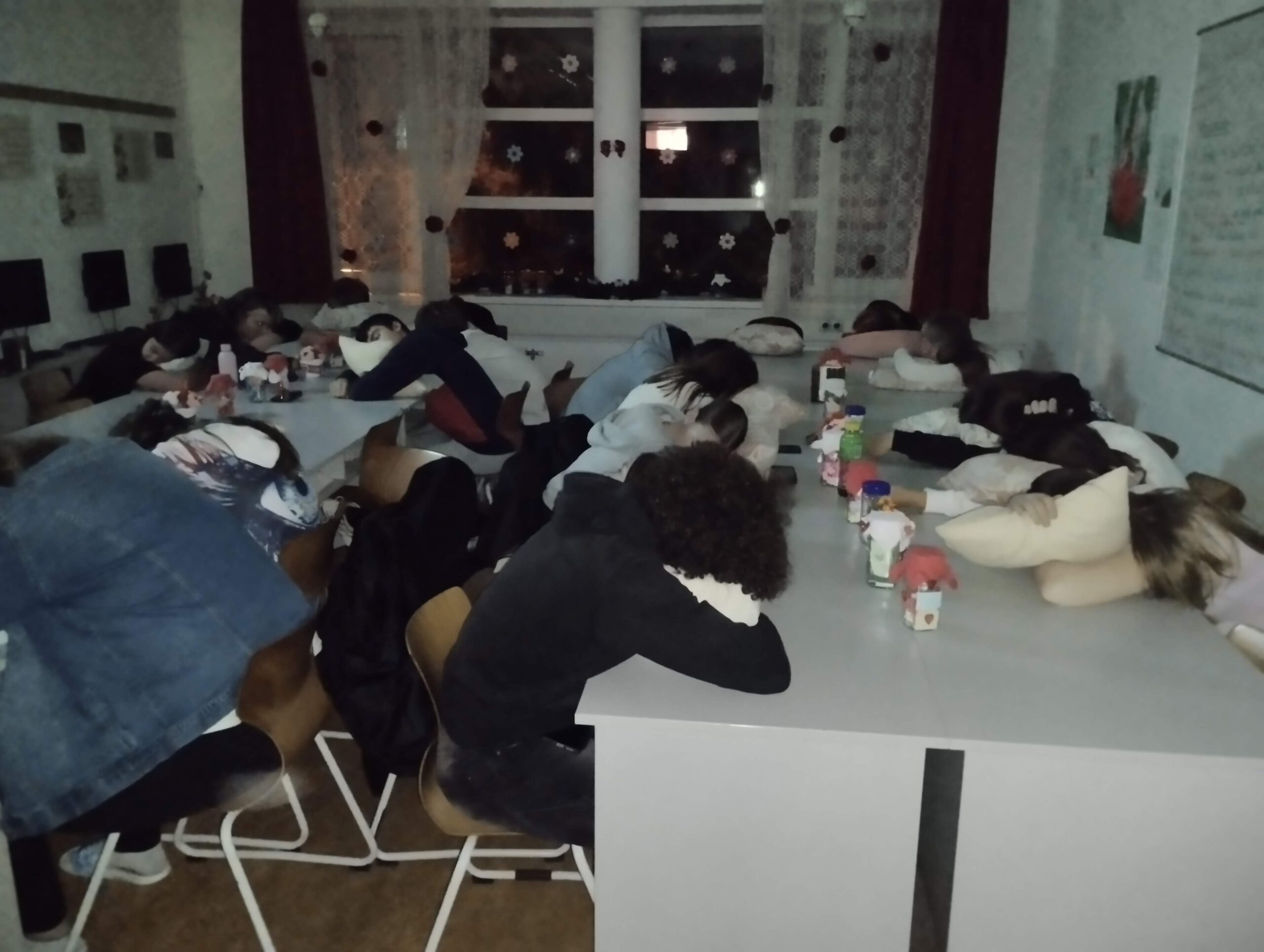 Kollégiumi szinten meghirdettem egy közös relaxációt a Kapcsolatok ápolása témában. A gyerekek köszöntése után ráhangolódásként egy mesét olvastam fel és utána pedig a relaxáció következett. Pozitív visszajelzést kaptam, az ott lévő gyerekektől.