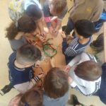 Az osztály baráti csoportjait egy „Barátságfa” készítésével jelenítettük meg, amelyre mindenki felírta, milyen pozitív tulajdonságokat (erősségeket) lát a társaiban, amelyek segítik a jó kapcsolatok fenntartását. A csoport másik része a szeretetbab színezőt színezte ki. Továbbá ők szeretetbabokat is csíráztattak. A csoport fele kedveskedett a baboknak, a másik fele nem. És láthatták is, hogy amely baboknak kedveskedtek, azok gyorsabban kezdtek el csírázni. Ezt követően elültettük a babokat. És még barátságkarkötőt is csináltak a gyerekek egymásnak, amit roppant mód élveztek.