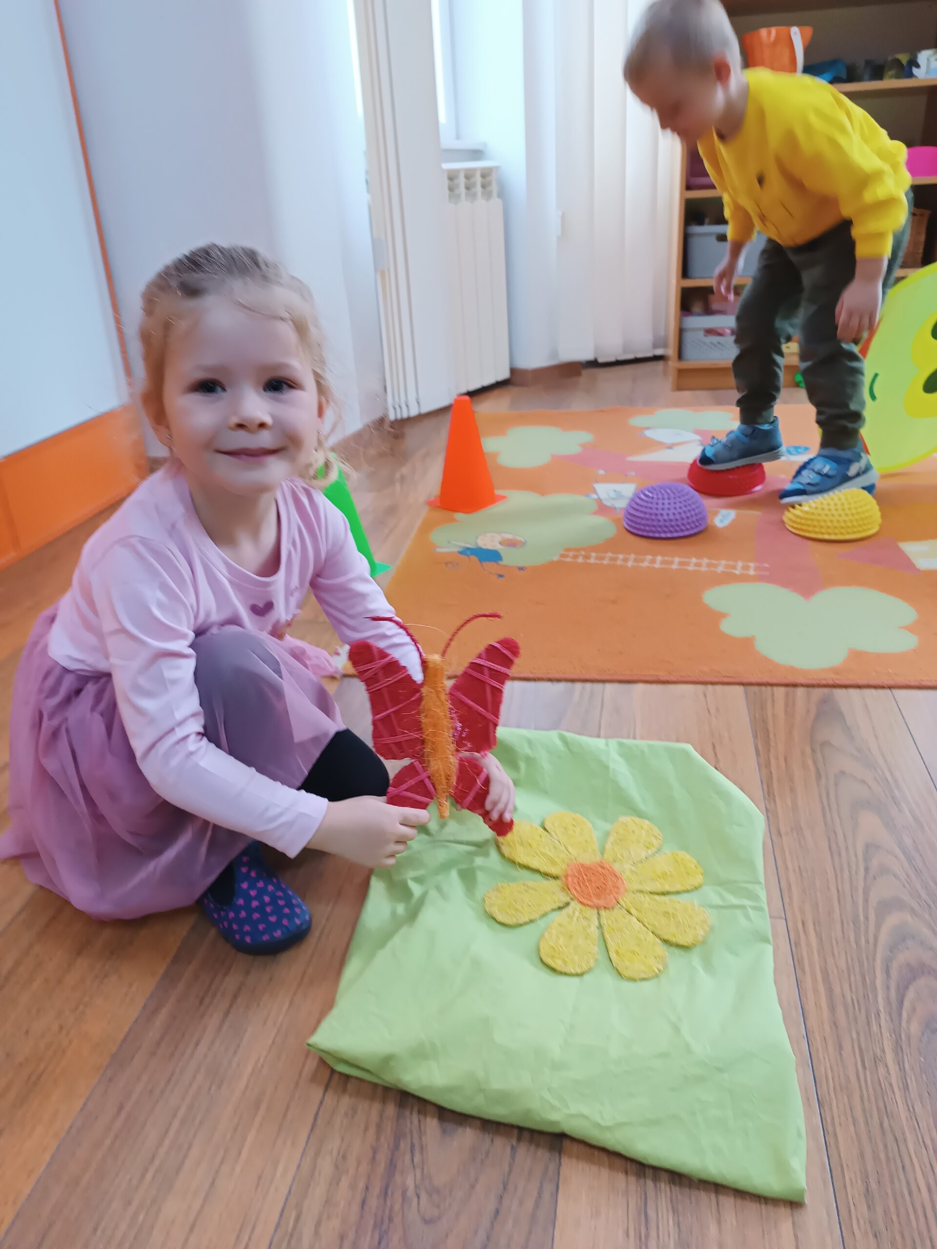 – Akadálypálya: Mentsük meg a pillangót! Segítsünk a bajban! (3 akadály: -alagútmászás, -kövekre lépés, hogy ne essünk a patakba,- szaladás bója körül, pillangó megkeresése és a szabad pillangó virágra helyezése)