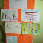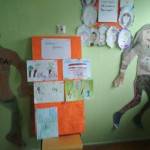 Szívesen mutogattak el a gyerekek különböző sportágakat,lerajzolták a kedvelt sport tevékenységüket.Egy kislány és egy „szem” fiúnk életnagyságú papírfigurája emlékeztet a mindennapi mozgás fontosságára.Mozgalmas,intenzív mozgásos óra volt.