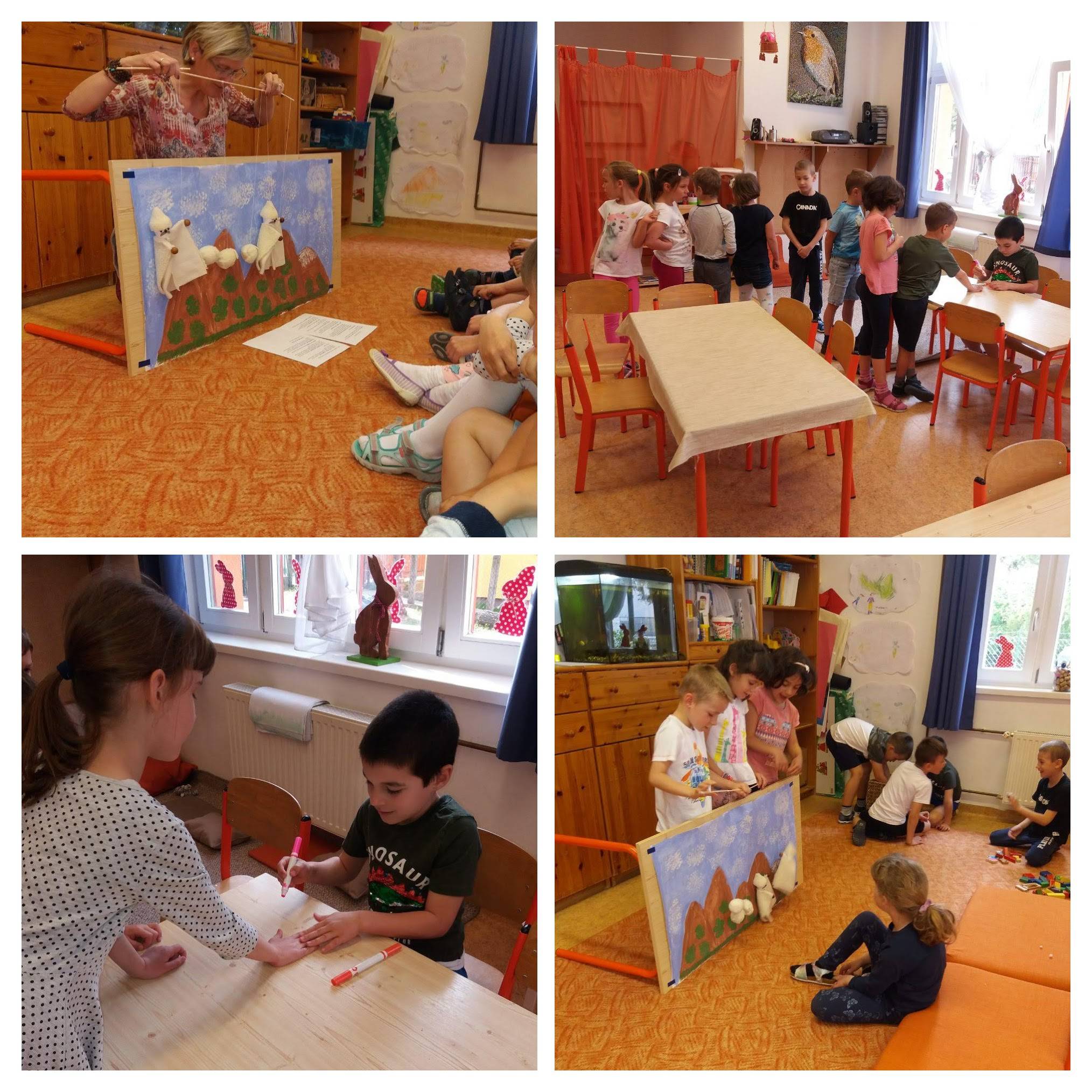 A tervezett kezdeményezést egy bábszínház közös berendezésével kezdtük, ahol a gyerekek rendezték be a nézőteret, nyitottak pénztárat, jelöltek ki pénztárost és már kanyargott is a sor a jegyekért. Marionett bábokkal meséltem nekik a „Két juhász meséjét”. Ezt egy beszélgetőkör követte, ahol felszínre kerültek az éppen aktuális sérelmek.