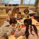A Boldogságóra keretében az „Apró örömök” témáját a víz világnapjához kapcsoltuk. A foglalkozás során a gyerekek játékos, élményalapú tevékenységeken keresztül tapasztalhatták meg a víz fontosságát és az apró örömök értékét. A programot kísérletezéssel kezdtük, amely során ételfestékkel színezett vízbe helyeztünk virágokat és zellerszárakat. A gyerekek érdeklődve figyelték meg, hogyan változik meg a növények színe, így közvetlen tapasztalatot szerezhettek a víz felszívódásáról. A kísérlet nagy izgalmat és rácsodálkozást váltott ki belőlük. Ezt követően mozgásos játékra került sor „Szabadulás a mocsárból” címmel. A gyerekek különböző felületű korongokon lépkedve jutottak át a „mocsáron”, miközben fejlődött egyensúlyérzékük és együttműködési készségük. A játék sok nevetéssel és sikerélménnyel járt. A kreatív tevékenységek során papírból vízcseppeket készítettek, amelyeket saját elképzeléseik szerint díszíthettek. Emellett „varázsvirágokat” is alkottunk: papírtörlőből kivágott virágokat színeztek meg filccel, majd zseníliadrót szár segítségével vízbe helyeztük őket. A gyerekek örömmel figyelték meg, ahogyan a víz hatására a színek elmosódnak és különleges minták jönnek létre. A foglalkozás során a gyerekek megtapasztalhatták, hogy a víz nemcsak létfontosságú, hanem örömforrás is lehet. A játék, az alkotás és a felfedezés élménye hozzájárult ahhoz, hogy tudatosabban figyeljenek a mindennapi apró örömökre.