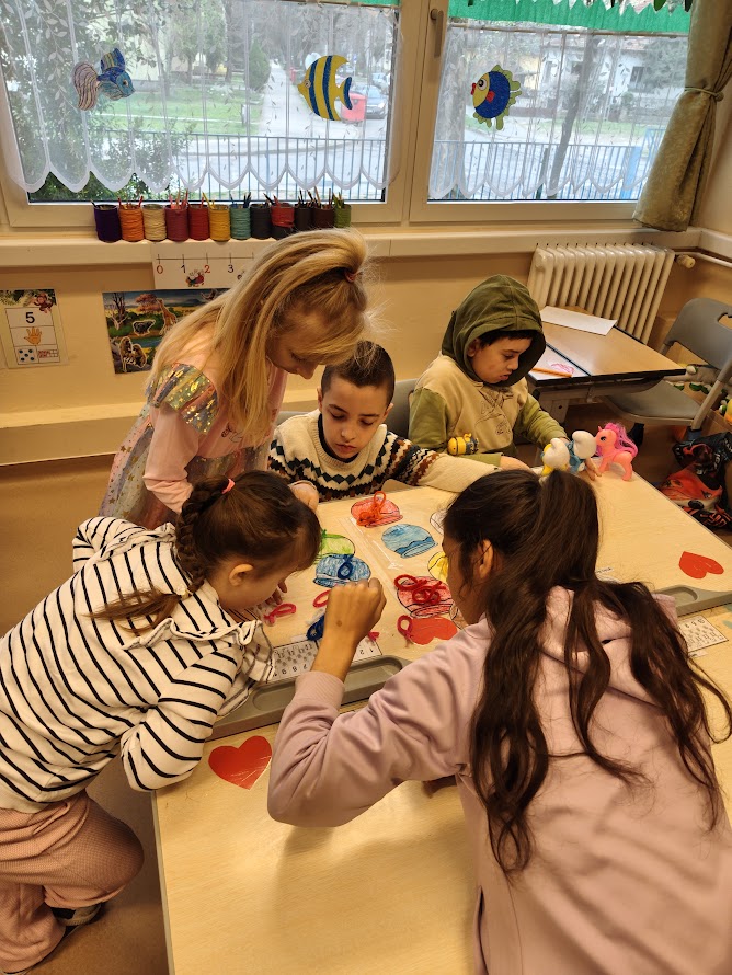 A Boldogságóra keretében az „Apró örömök” témáját a víz világnapjához kapcsoltuk. A foglalkozás során a gyerekek játékos, élményalapú tevékenységeken keresztül tapasztalhatták meg a víz fontosságát és az apró örömök értékét. A programot kísérletezéssel kezdtük, amely során ételfestékkel színezett vízbe helyeztünk virágokat és zellerszárakat. A gyerekek érdeklődve figyelték meg, hogyan változik meg a növények színe, így közvetlen tapasztalatot szerezhettek a víz felszívódásáról. A kísérlet nagy izgalmat és rácsodálkozást váltott ki belőlük. Ezt követően mozgásos játékra került sor „Szabadulás a mocsárból” címmel. A gyerekek különböző felületű korongokon lépkedve jutottak át a „mocsáron”, miközben fejlődött egyensúlyérzékük és együttműködési készségük. A játék sok nevetéssel és sikerélménnyel járt. A kreatív tevékenységek során papírból vízcseppeket készítettek, amelyeket saját elképzeléseik szerint díszíthettek. Emellett „varázsvirágokat” is alkottunk: papírtörlőből kivágott virágokat színeztek meg filccel, majd zseníliadrót szár segítségével vízbe helyeztük őket. A gyerekek örömmel figyelték meg, ahogyan a víz hatására a színek elmosódnak és különleges minták jönnek létre. A foglalkozás során a gyerekek megtapasztalhatták, hogy a víz nemcsak létfontosságú, hanem örömforrás is lehet. A játék, az alkotás és a felfedezés élménye hozzájárult ahhoz, hogy tudatosabban figyeljenek a mindennapi apró örömökre.