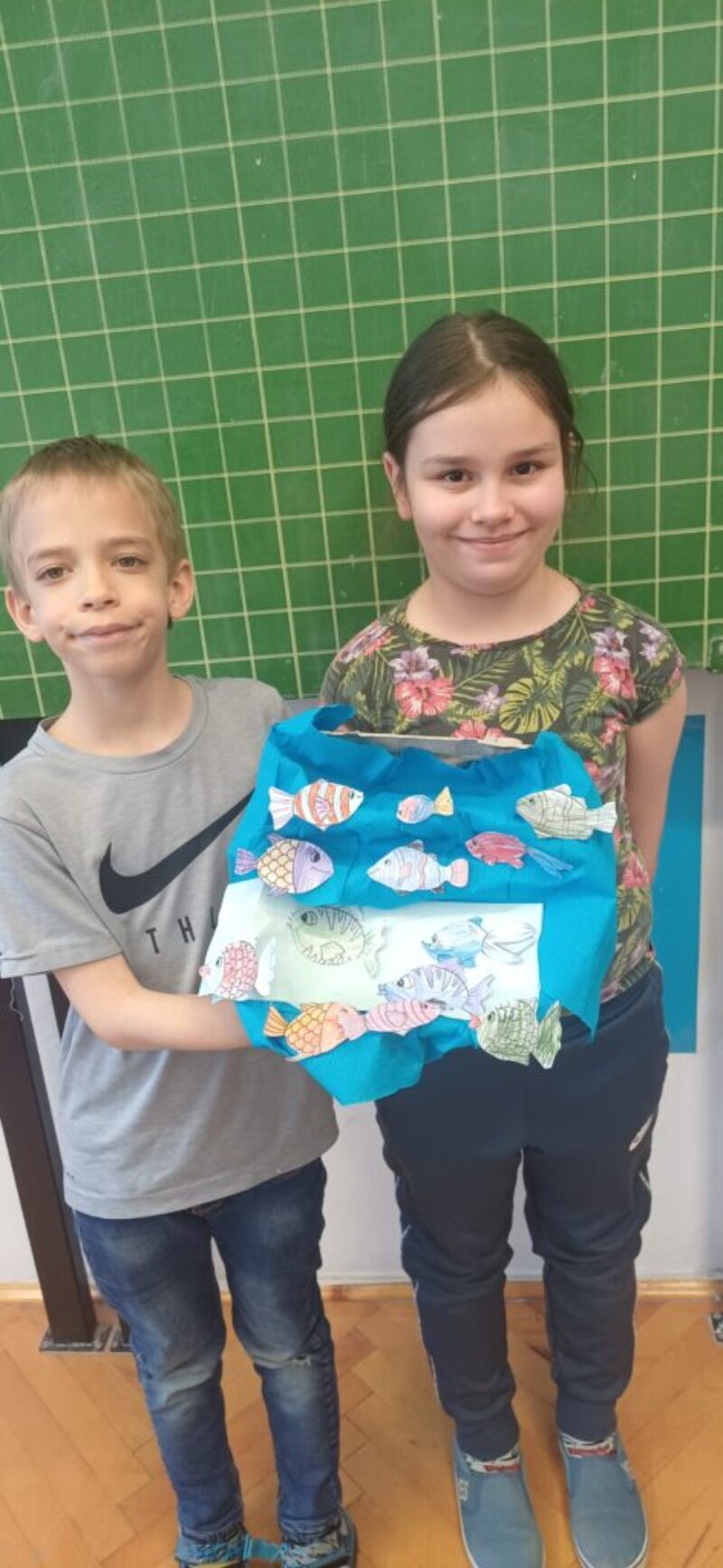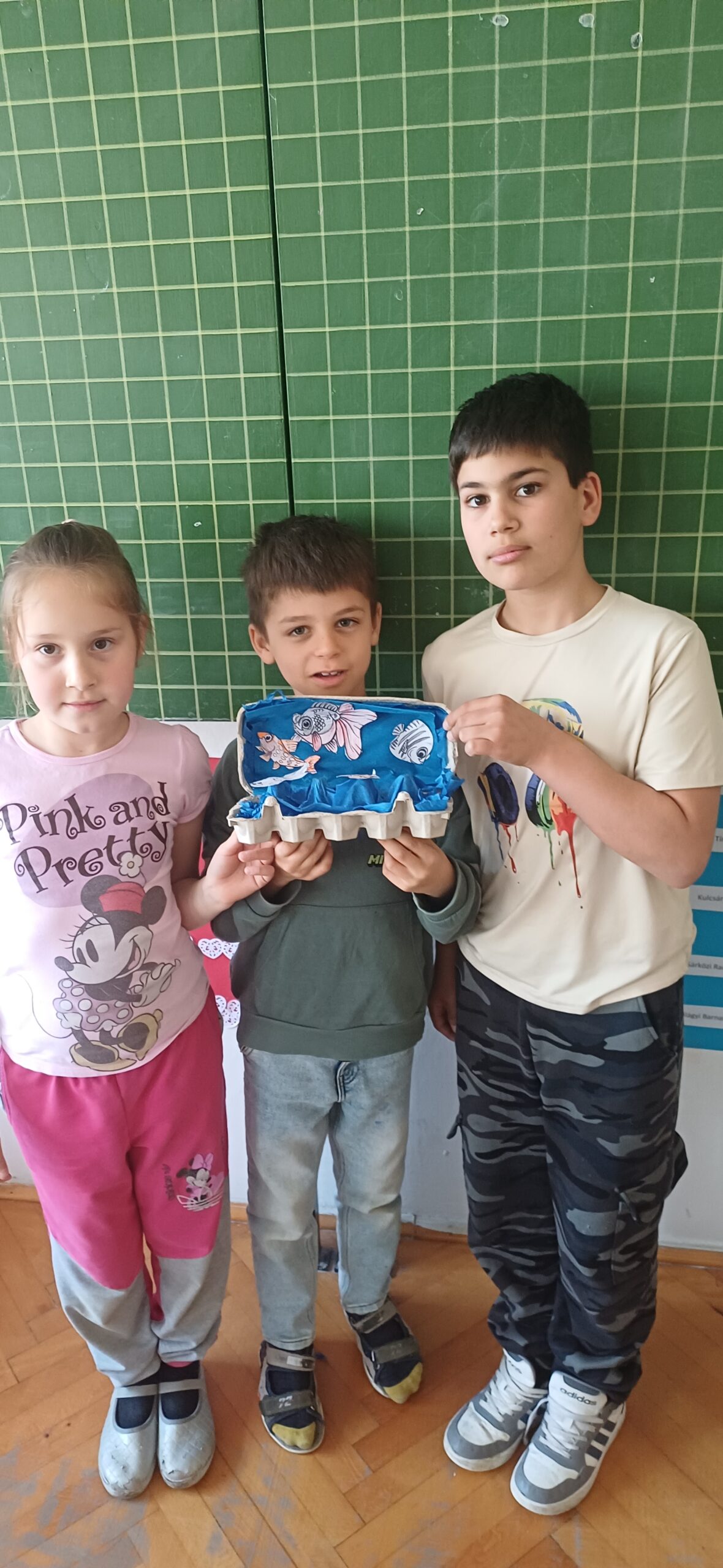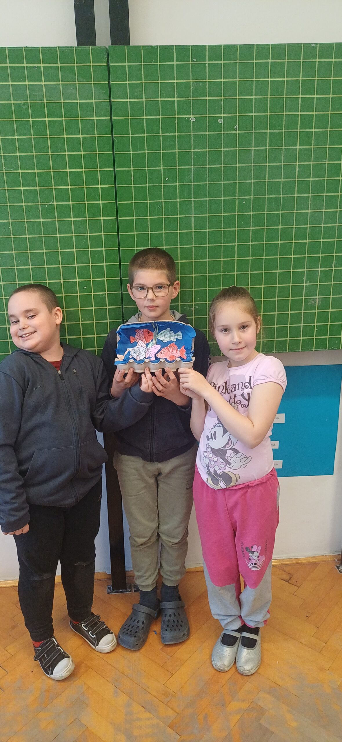 A Víz Világnapjára közös kis akváriumot készítettünk halacskákkal csoportmunkában a közös munkában kiteljesedett az osztály ,minden kis gyerek boldog volt,örült a szèp,kis alkotásnak.Sokat beszélgettünk a vízről ,hogy takarékoskodni kell vele ,valamint,hogy az élet mennyire fontos lételeme.