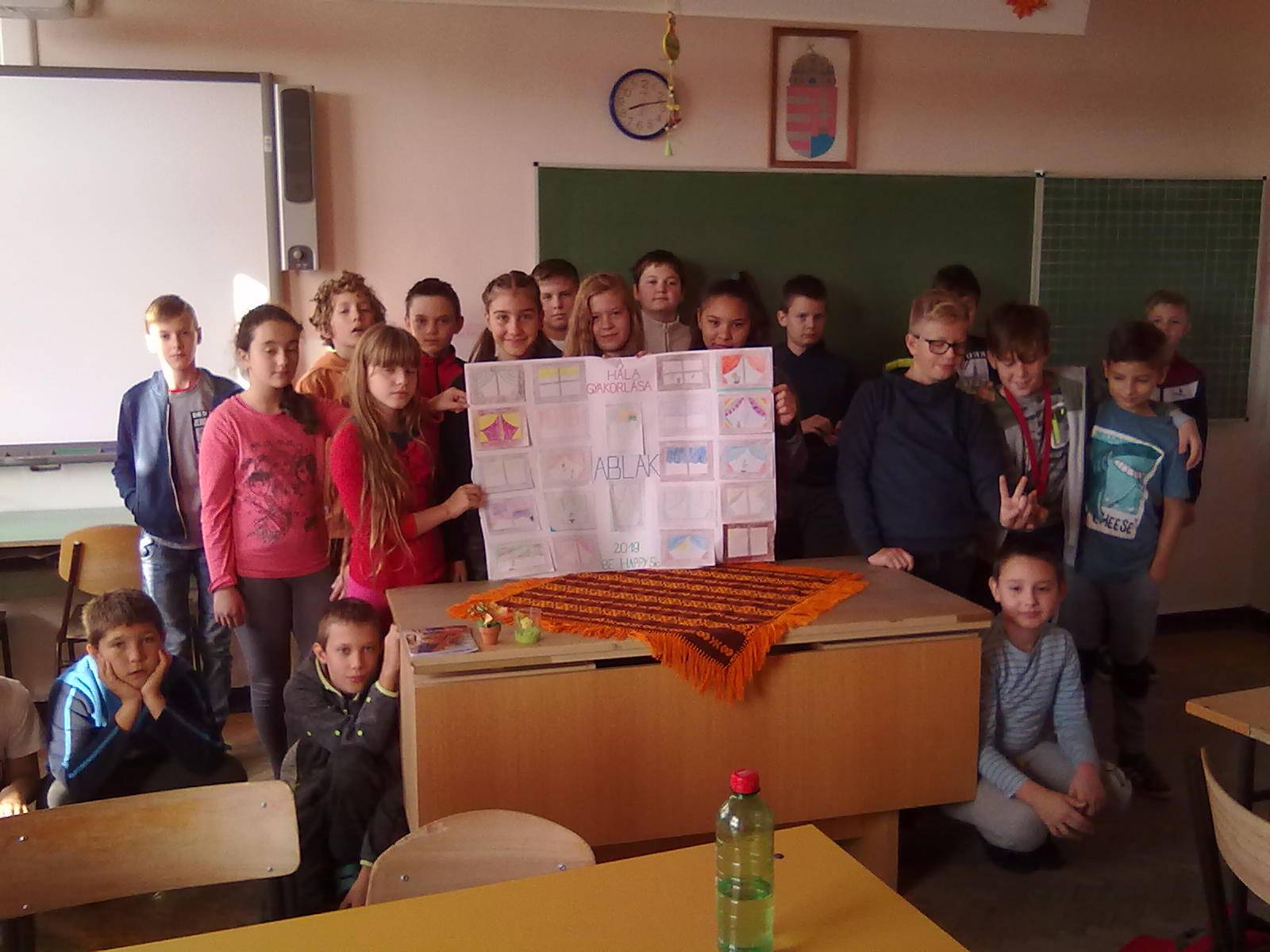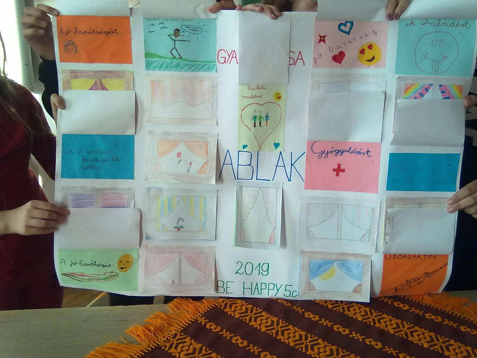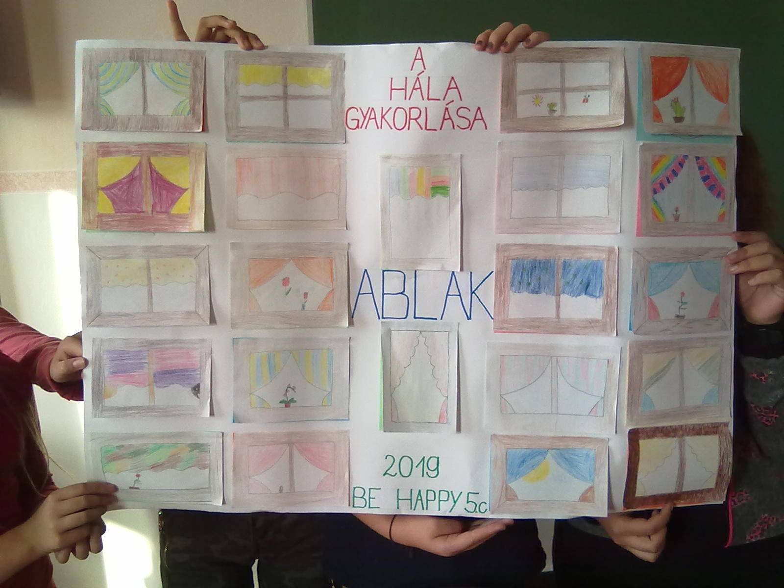 Páros munka majd közös együttműködés után elkészült az ABLAK poszterünk, melyen minden tanuló egy-egy kis ablakba rejtette el háláját.