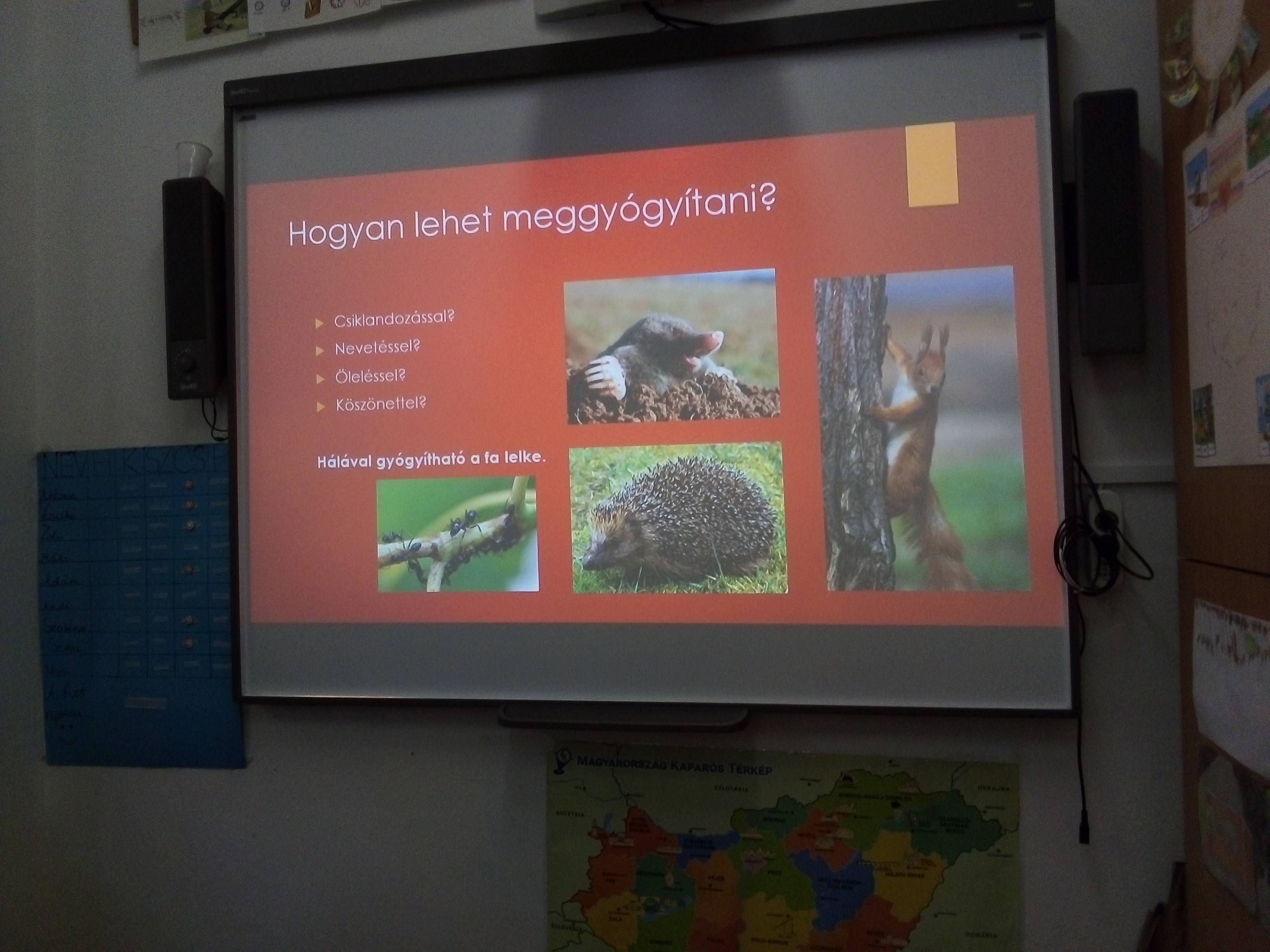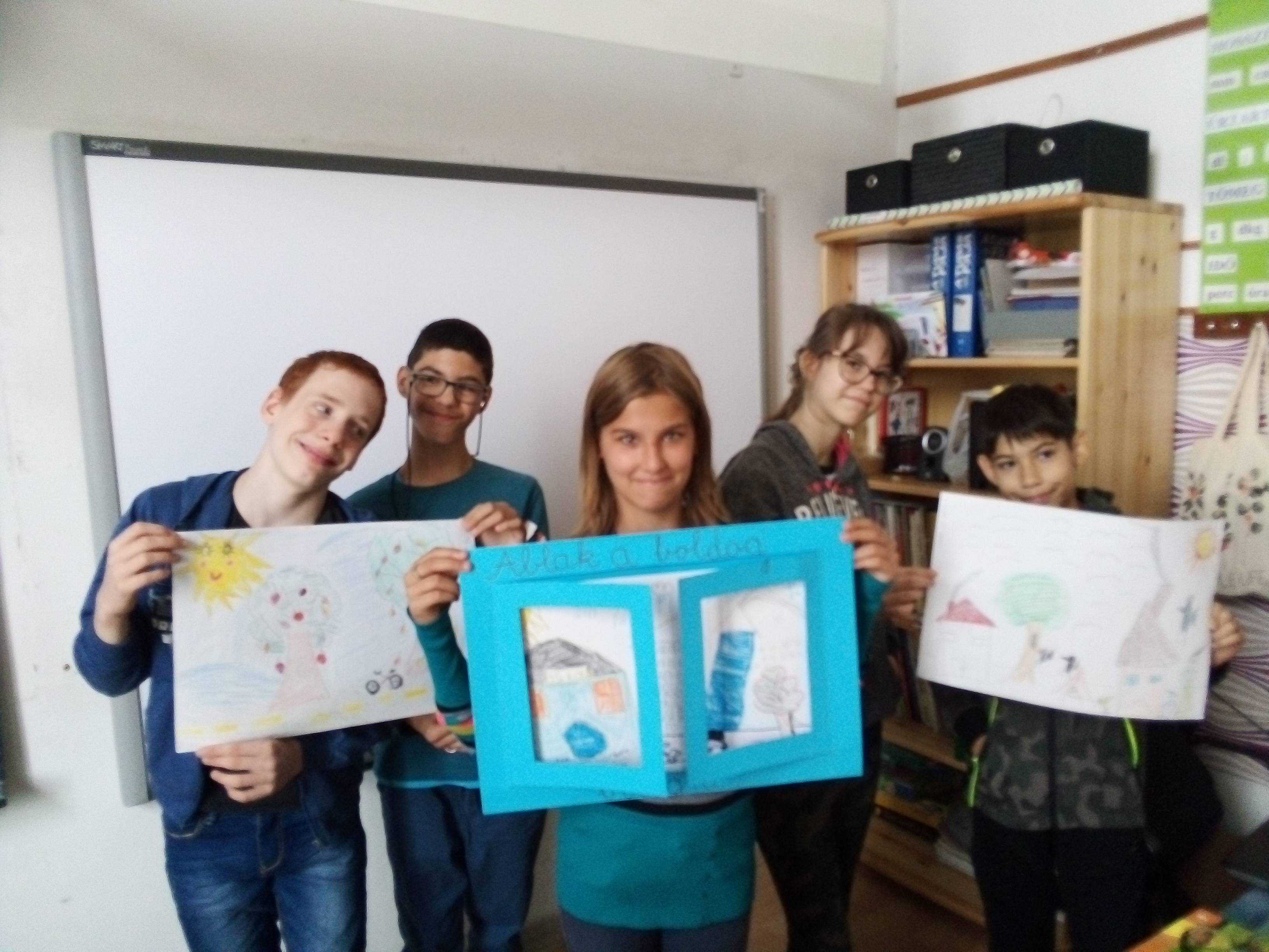 harmadik évben visszük a programot. Hála a programnak az örökös boldog iskola címet kaptunk ebben az évben. A gyerekekek kifjezték érzéseiket, milyen az amikor kitekintünk a világra. Megköszöntük a Napsütést, a gyönyörű időt, a szines leveleket, a szivárványt, a kirándulást…