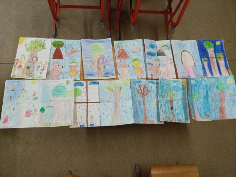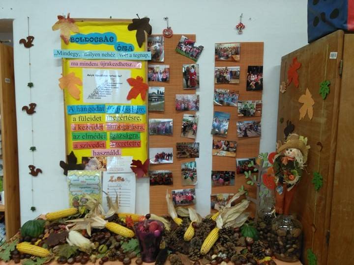 A hála témát több módon is feldolgoztuk. Hálásak vagyunk a nyári szép emlékekért, melyeket üvegbe zártuk, hogy ne felejtsük el! A Boldogságfalunkat megtöltöttük sok emlékezetes képpel. Hálásak vagyunk, hogy ilyen sok szép emlékünk van együtt.Terméseket gyűjtöttünk, kifejezve ezzel is, hogy hálásak vagyunk a természetnek a sok szép őszi levélért és termésekért.A hónap feladatát mi rajzolva valósítottuk meg. Természeti sétára mentünk és lerajzoltuk, amit láttunk.