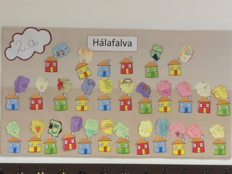Osztályunk egy olyan rajzot készített a háláról, amely ablakkeretekben azt ábrázolja, mennyi