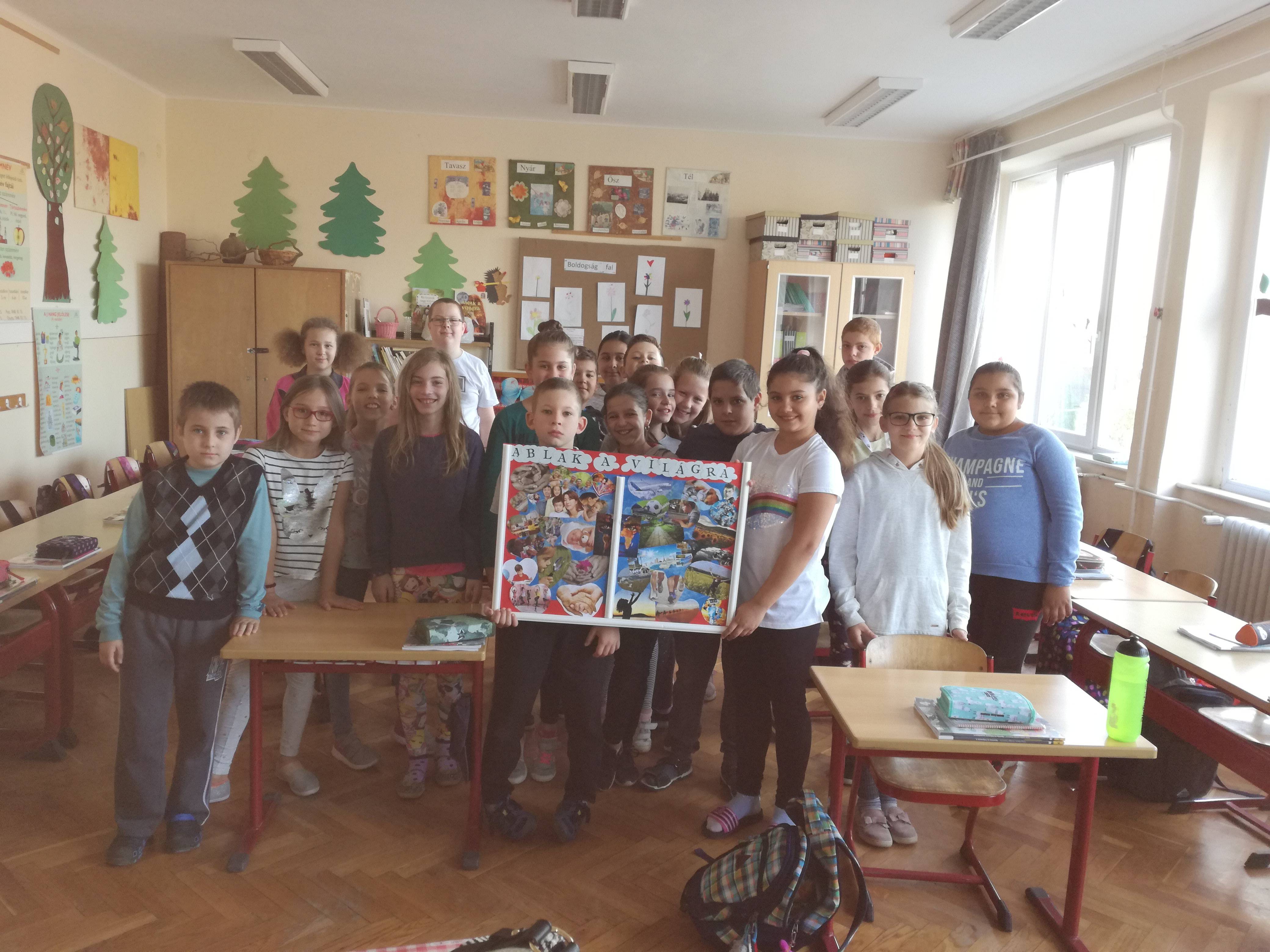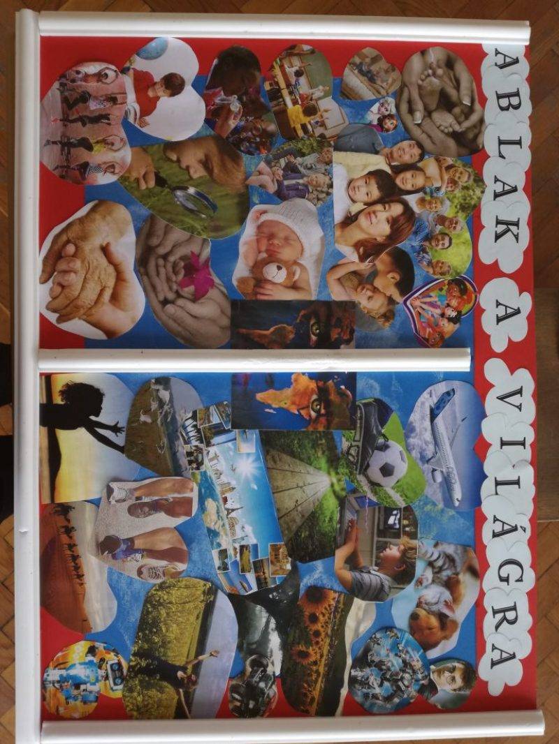 Az Ablak a világra feladat keretében átbeszéltük a gyerekekkel a számukra legfontosabb dolgokat a világban. A körülöttük lévő világból összeszedtük, miért lehetnek hálásak (élmények, szépség, megismerés, utazás, sport, család, barátok). Átbeszéltük azt is, hogy a képeken látható személyek miért lehetnek hálásak(születés, elfogadás, lehetőségek kihasználása, szeretet, stb.). Képeket gyűjtöttünk, elsősorban a természet és az emberi kapcsolatok témákban. Így készült el a montázs.