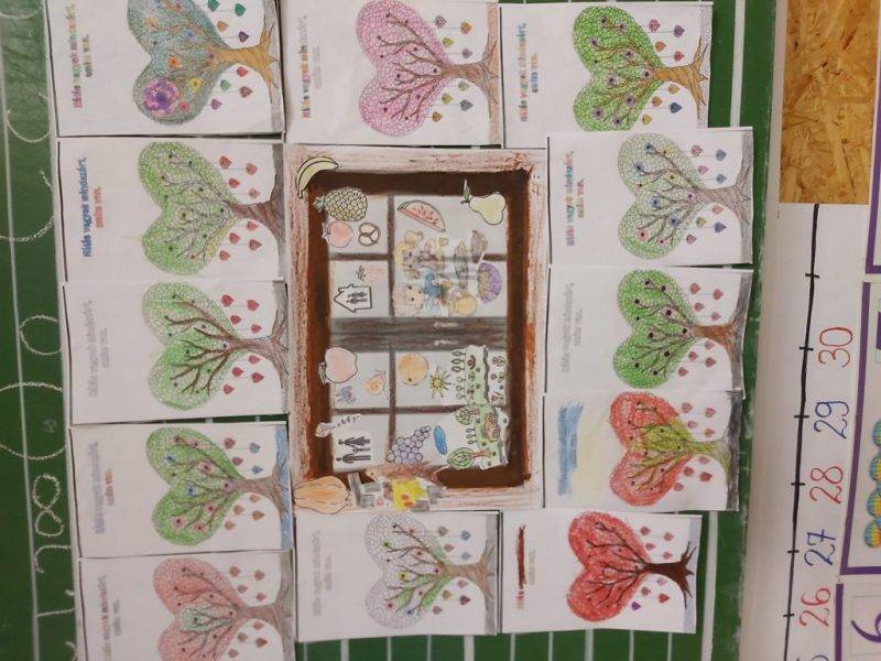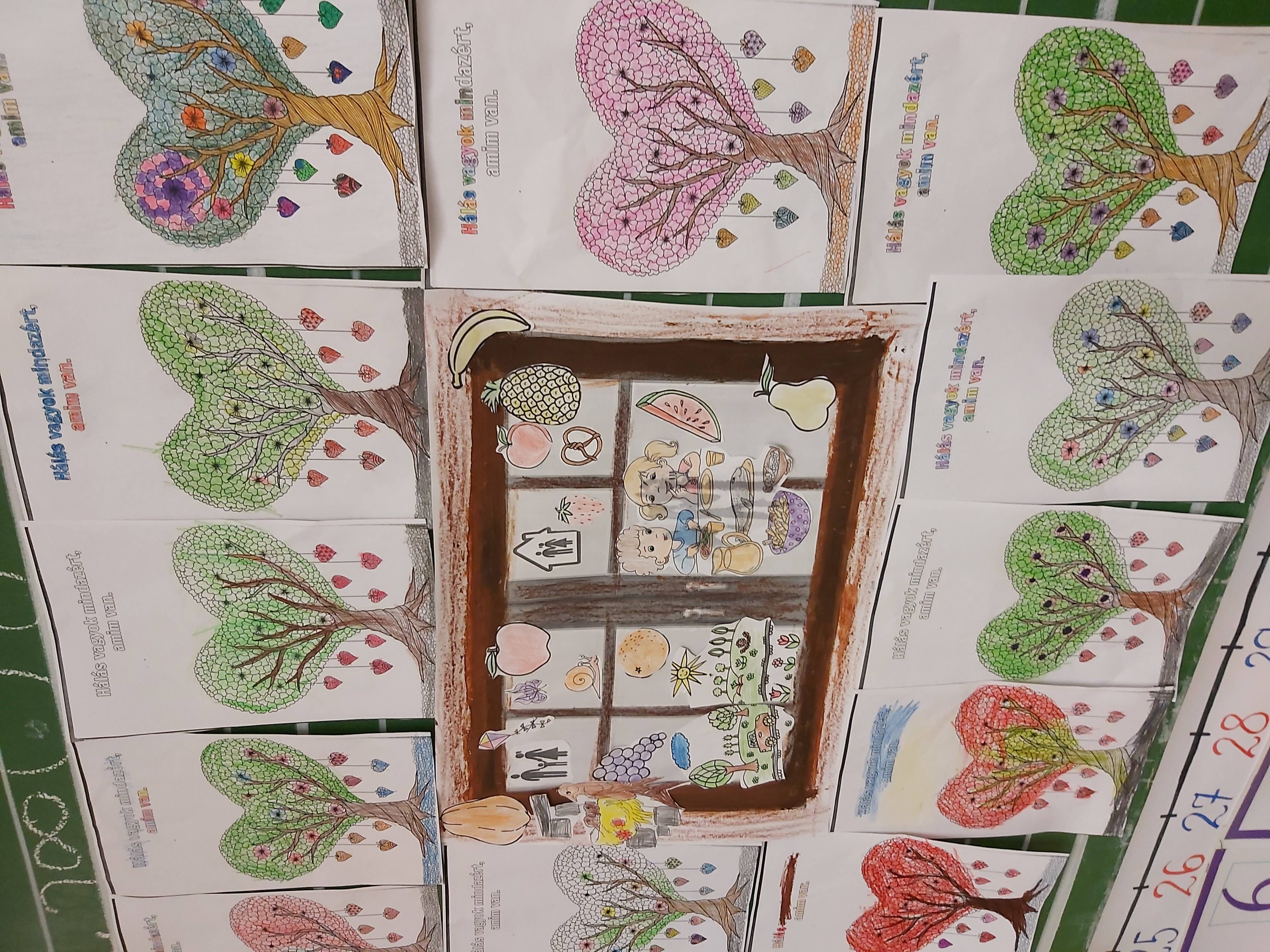 A Tiszakanyári Hunyadi Mátyás Általános Iskola 1.osztályos tanulói először vettek részt a boldogságórán. Szeptember a beilleszkedés az iskola szabályrendszerének megismerkedésével zajlott. ViTT rendszer működik iskolánkban, jó cselekedetért „Ez igen” kártyákat kapnak a tanulók. Ennek a rendszernek a megismertetését összekapcsoltam a hála témakörrel. Én a hálámat jó tetteikért kártyával jutalmaztam. A boldogság órát a hónap dalával kezdtük. Az óra bevezetését az előző tanévben feltöltött képek által mutattam be a gyerekeknek. Megbeszéltük a hála, az öröm és a boldogság fogalmát. Kiszíneztük a hálafát, mivel ők még nem tudnak írni, megbeszéltük ki miért hálás az adott napon. Az ablakunkra azok a gyerekek által kiszínezett képek kerültek, melyekre a hála szó elsősorban eszükbe jutott.