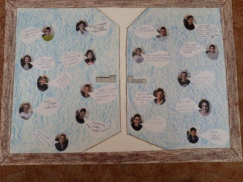 A hála témát úgy dolgoztuk fel, hogy készítettünk egy rajzot, ablakot, amelyen kitekintett az osztály, és megfogalmazta, hogy mi mindenért hálás.