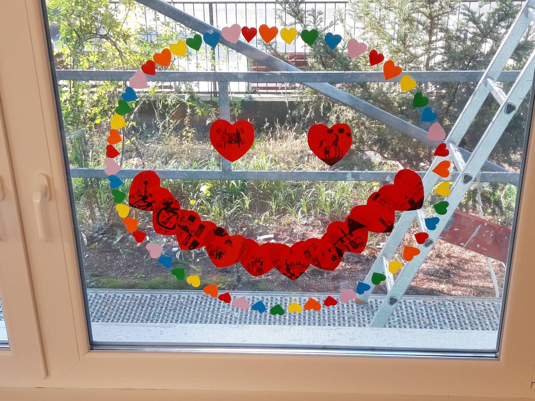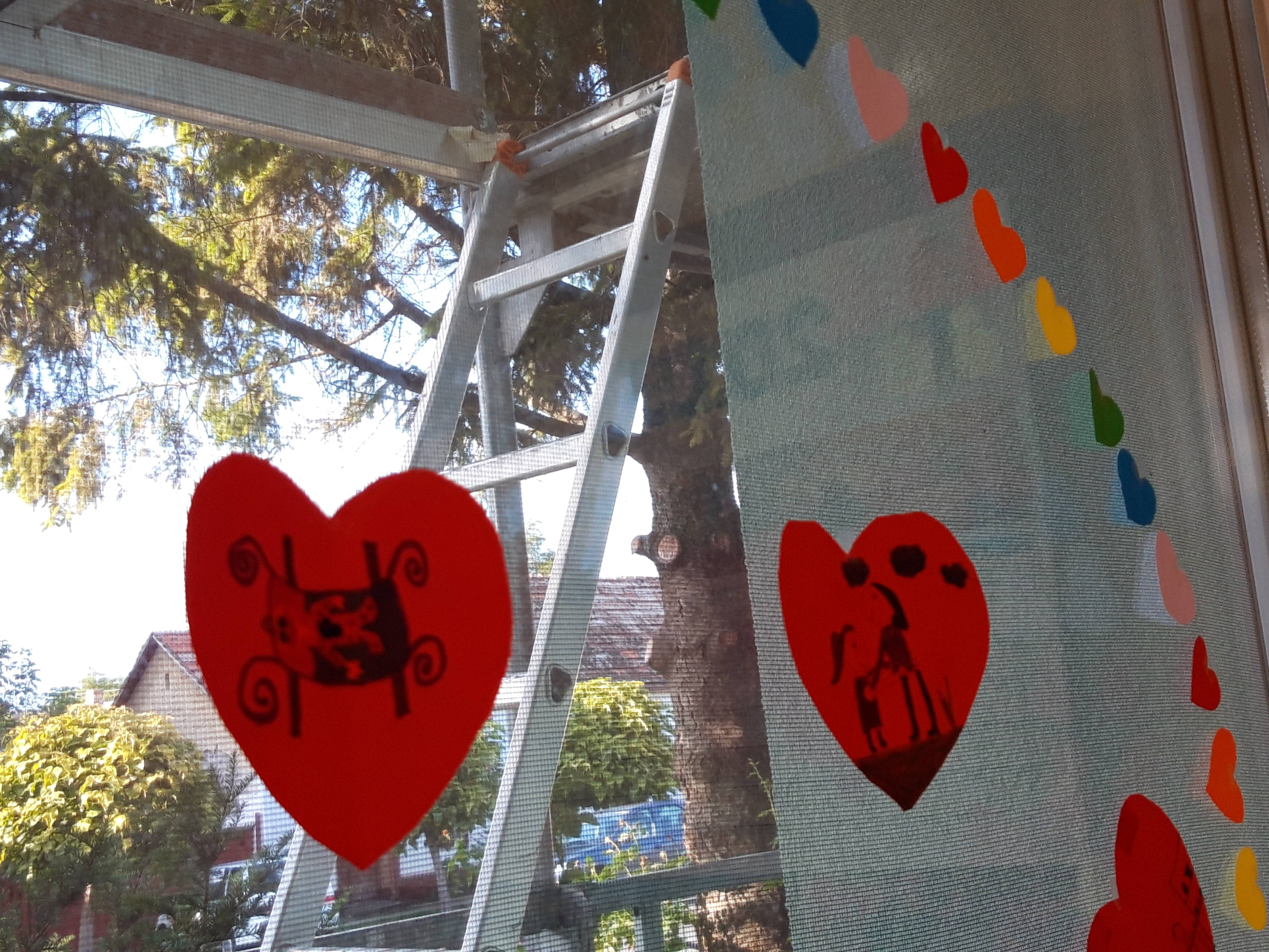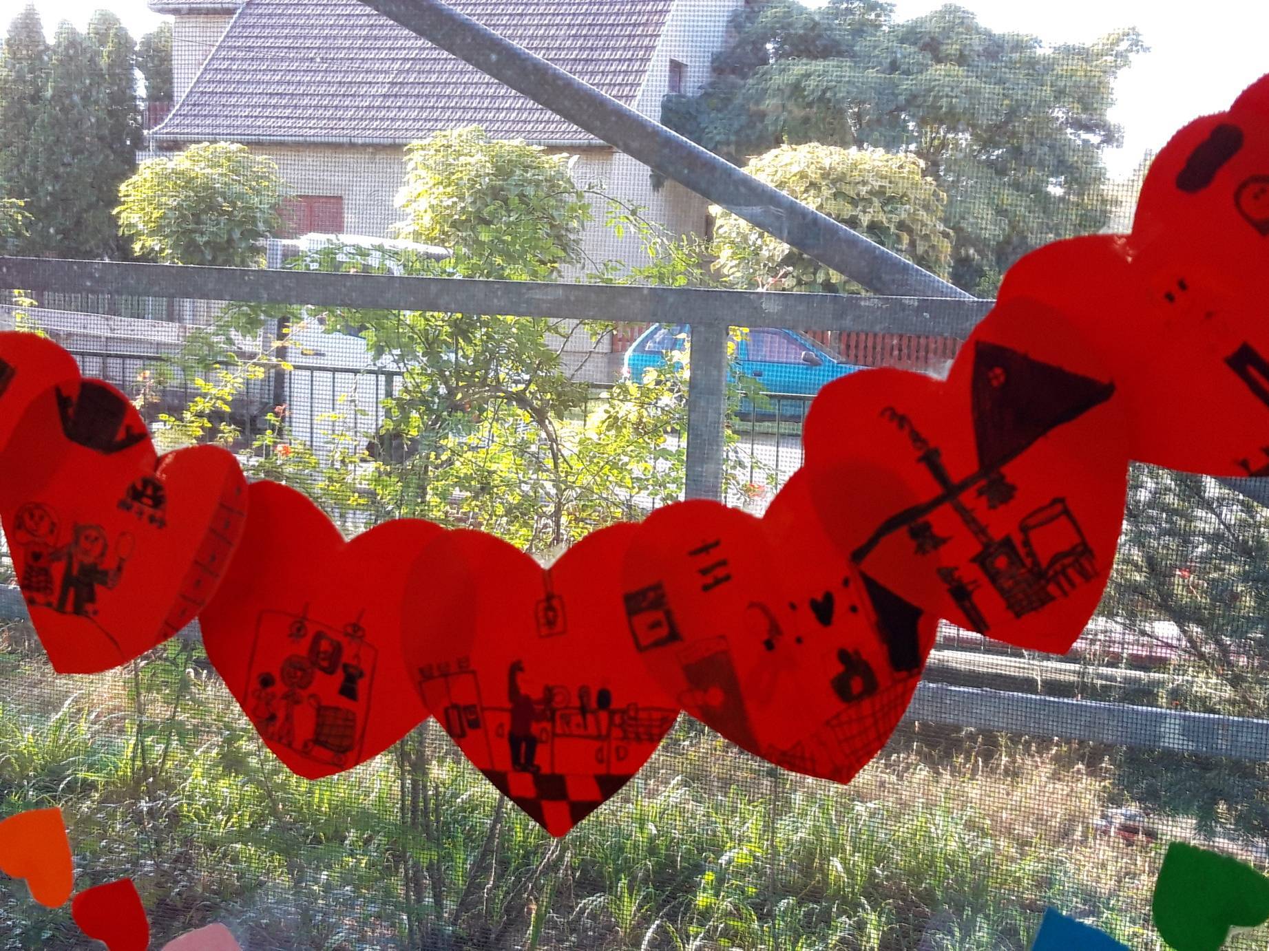 Mosoly-lak boldog lakosaiként minden nap hálát adunk a bennünket ért kis és nagy csodákért. Így többek között a napfényért, az oxigént termelő fákért, vízért, ételért, az egészségünkért, két szemünk világáért, két kezünk munkájáért, a bennünket körülvett szeretetért, segítő, biztató, dicsérő szándékért, minden mosolyért, jó tanácsért, természetért, állatokért, növényekért, illatokért, szépségekért…. de elsősorban szüleinek vagyunk hálásak, kezdve attól, hogy megszülettünk. A hónap dalát hallgatva szívünkre rajzoltuk, hogy mi mindenért vagyunk hálásak szerető, gondoskodó szüleinknek, s mindezt egy mosolygós arcként felragasztottuk az iskolánk egyik ablakára. Az arcocska szivárványszínű körvonala minket szimbolizál, hogy mindannyian mások vagyunk, de abban azonosak, hogy együtt mondunk hálát minden „örömmorzsáért”. Az már csak ráadás, hogy a háttérben látszanak az iskolánkat körbevett állványok és a létrák, ugyanis azért is nagyon hálásak vagyunk, hogy felújítják, szebbé, gazdaságosabbá teszik az intézményünket.