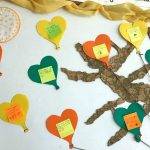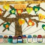 A gyerekek kis lapokra leírták, vagy lerajzolták, hogy kinek, miért hálásak. Ezeket szív alakú lufikra ragasztottuk. A tanterem hátsó falán található „ablakon” kitekintve láthatjuk a hálafát a lufikkal.