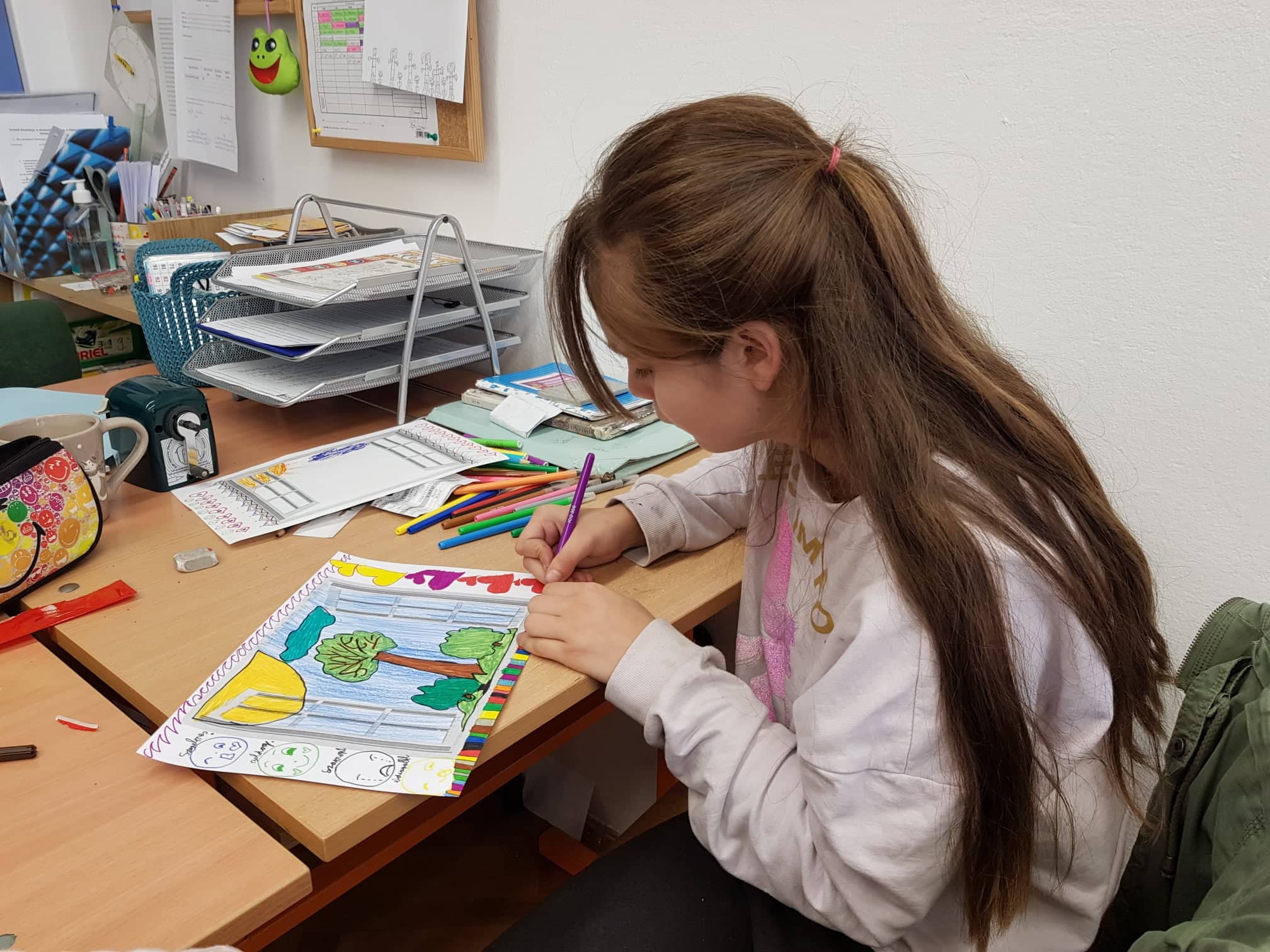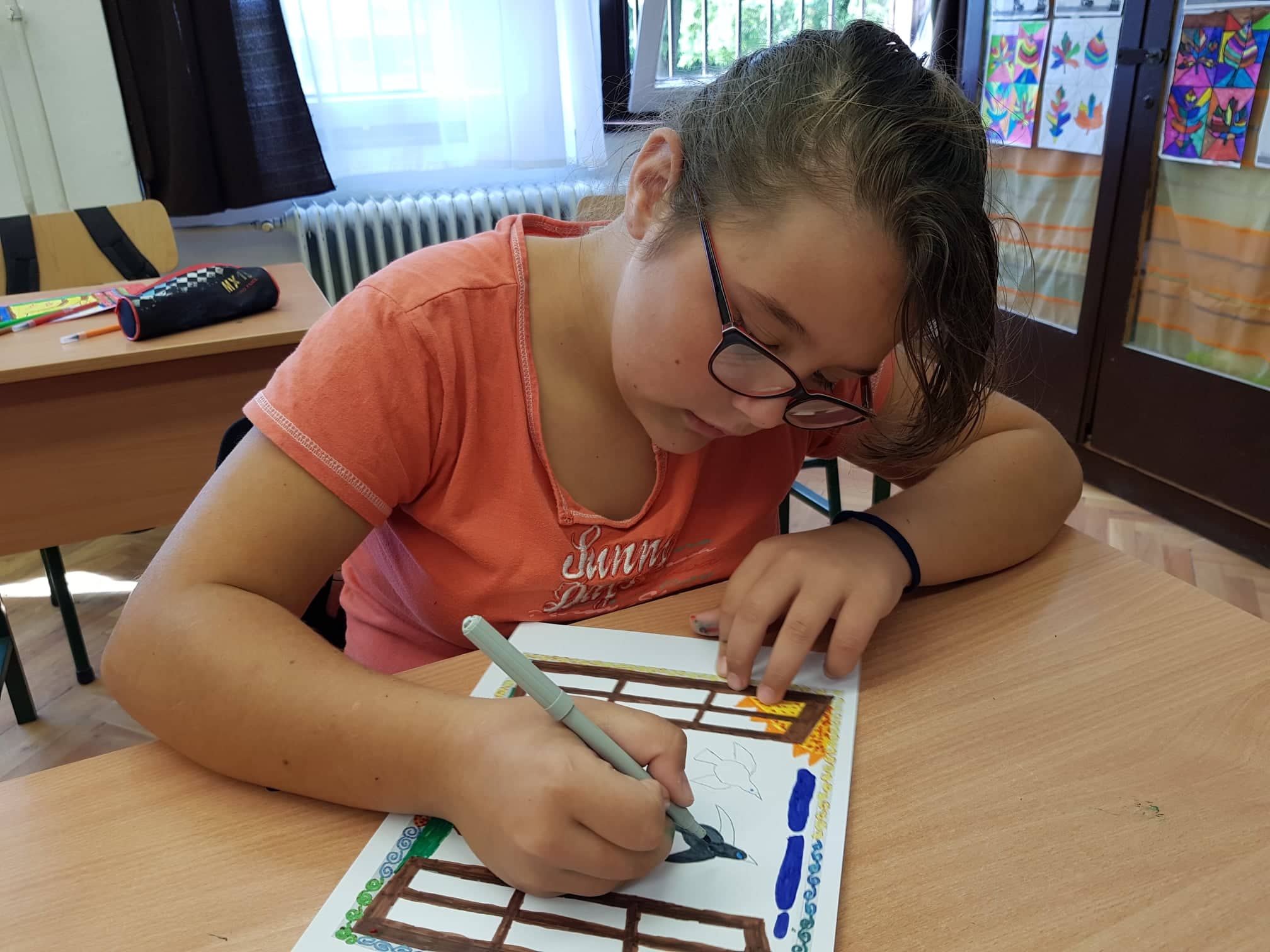 Az új tanévben néhány új tanulóval bővült az 5. osztály. Bevezető foglalkozáson beszélgettünk arról, hogy kinek, mit jelent a boldogság fogalma. Majd a hála témáját jártuk körbe. Meghallgattuk Bagdi Bella dalát, mely jól ellazított és nyugodt állapotba hozott mindenkit, ezután Aranyosi Ervin: Hálás vagyok című versén keresztül próbáltam még közelebb juttatni a gyerekeket a hála sokrétűségének és sokféleségének megértéséhez, átérzéséhez. Ezután mindenki megfogalmazta, hogy ő mi mindenért és kinek hálás. Aztán mindenki elkészíthette a rajzát az ablak sablonba. majd megmutatták egymásnak és beszéltek róla.