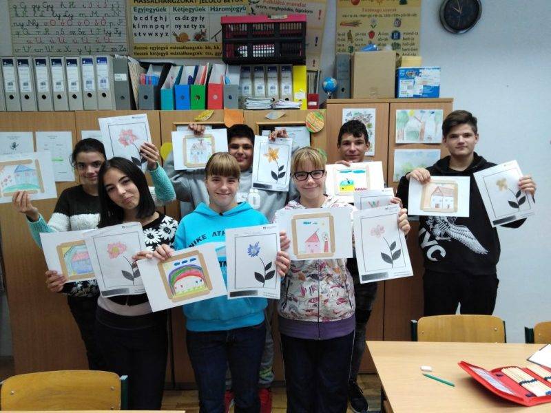 Az óra eleji ráhangolódásnál párban dolgoztak a gyerekek: átadtak egymásnak egy szívet, melyet maguk díszítettek. Megbeszéltük, milyen módon fejezhetjük ki a hálánkat. Majd beszélgetés keretében közösen megfogalmaztuk, mi mindenért lehetünk hálásak. Ezt követően önállóan hálavirágot rajzoltak a tanulók, majd spatulából ablakkeretet készítettünk és mindenki belerajzolta azt a dolgot, amiért éppen hálás. Munka közben a hónap dalát hallgattuk.