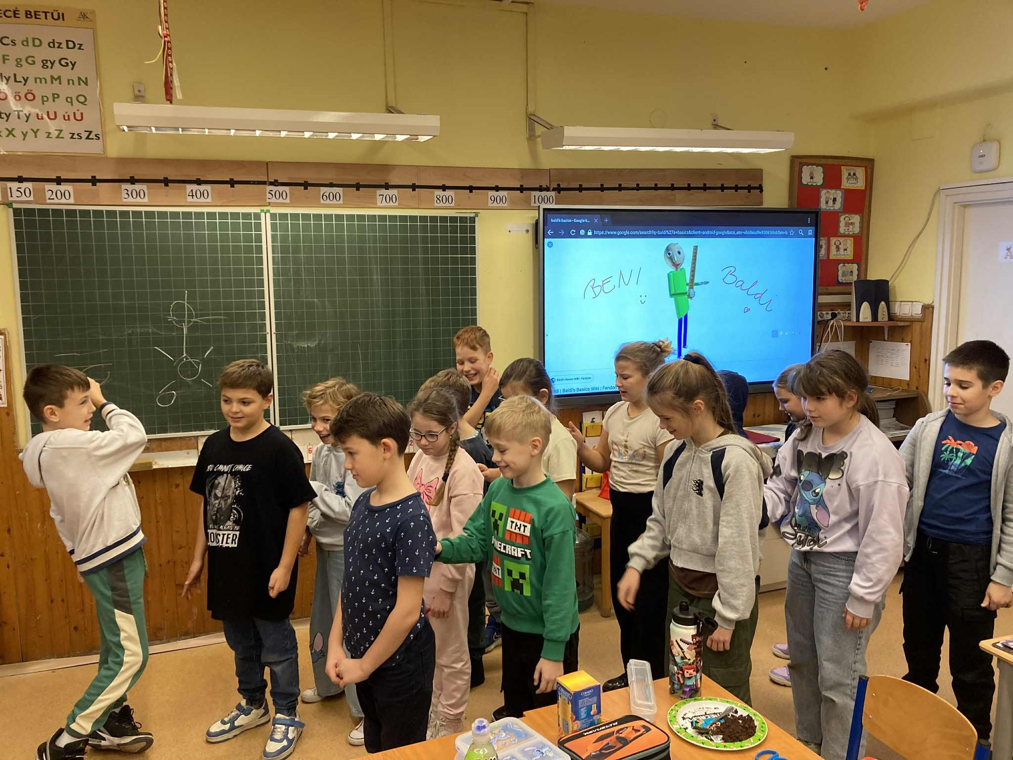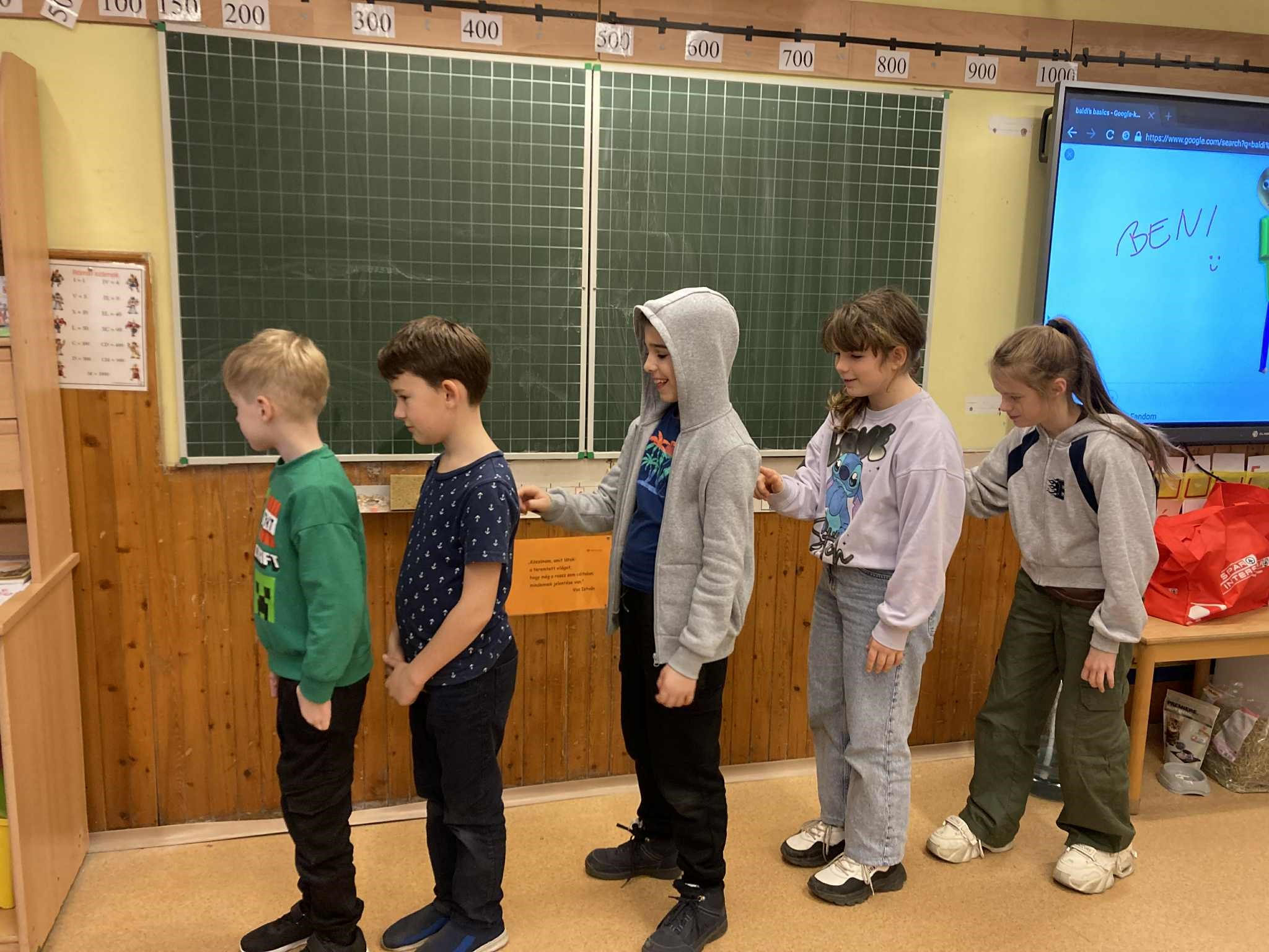 Nagyon jól sikerült feladat volt az ‘Add tovább!’ játék. A gyerekek nagyon élvezték a feladat adta örömöket. Vidámságot, jókedvet hozott a terembe. Sokat nevettek, viccelődtek a kisdiákok. Nem akarták abbahagyni az egymás hátára rajzolást! Jó volt látni az önfeledt és boldog mosolyt az arcokon, miközben együtt játszottak!