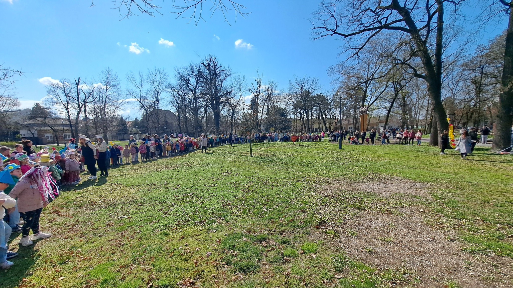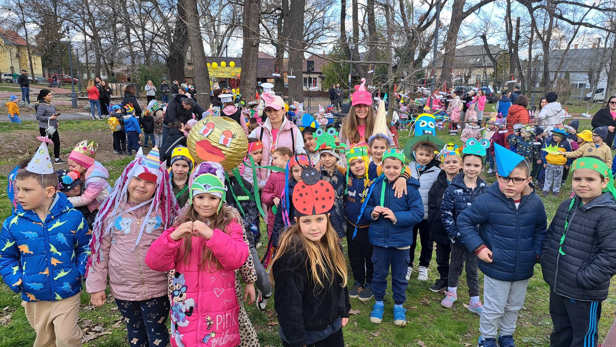 Óvodánk csoportjai vicces kalapban kivonultak a helyi zöld területre, ahol Makó városi önkormányzatával összefogva egy szelfi pontot is létre hoztak, valamint a Makói Általános Iskola zenekara zeneszóval kísérte a gyermeki dallamokat.