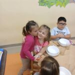 Jó cselekedetek gyakorlása volt a hónap feladata. Karácsony közeledtével a legjobb lehetőség adni, nem csak ajándékot: kedvességet, szeretetet, ölelést. Sokat beszélgettünk erről a gyerekkel, amit nagyon ügyesen el is sajátítottak, de nem csak ezen a héten, hanem az év szinte minden napján. Figyelmesek egymás felé a gyerekek és azonnal segítenek ha cipőt kell kötni, ha cipzárt kell segíteni felhúzni. Nagyon szeretnek egymásnak kedveskedni 1-1 rajzzal, színezővel. Mindent ügyesen megköszönnek. Együtt örülnek a társuk örömének, szeretettel ölelik őket. De ha eltörik a mécses, azonnal mennek simogatni, vigasztalni, legyen az felnőtt vagy gyerek. Imádnak segíteni a csoport életének szebbé tételében. Beszélgettünk a karácsonyi ajándékozásról is, ők mivel nem tudnak vásárolni a szeretetüket, puszikat és szép rajzokat adnak a szüleiknek és testvéreiknek. Volt aki mézeskalácsot készít az anyukájával, segít begyúrni, kiszaggatni és szépen kidíszíteni, ezt adják szeretteiknek. Sokat énekelgettünk kedves dalokat, legfőképpen karácsonyi témájúakat. Ünnepek közeledtével késztettünk a Süni csoportos gyerekeknek karácsonyfa díszt, melyet szépen kifestettek és strassz kövekkel díszítettek. Nagy volt az öröm a kicsik részéről.